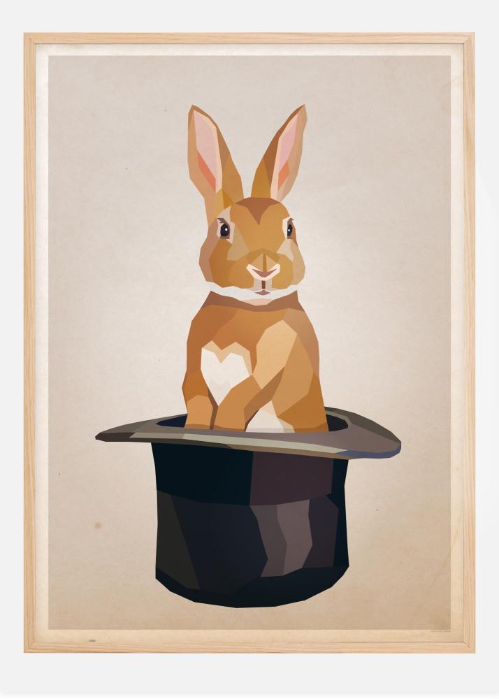 Lihtne, kuid lõbus poster, millel on küülik istumas mustkunstniku mütsis. Rahulikult istub kuldset värvi jänes ja vaatab rõõmsalt vaataja poole. Beeži tausta peal sulanduvad küüliku värvid ideaalselt kokku. See ilus print muudab teie lapse magamistoa soojaks ja sõbralikuks keskkonnaks.