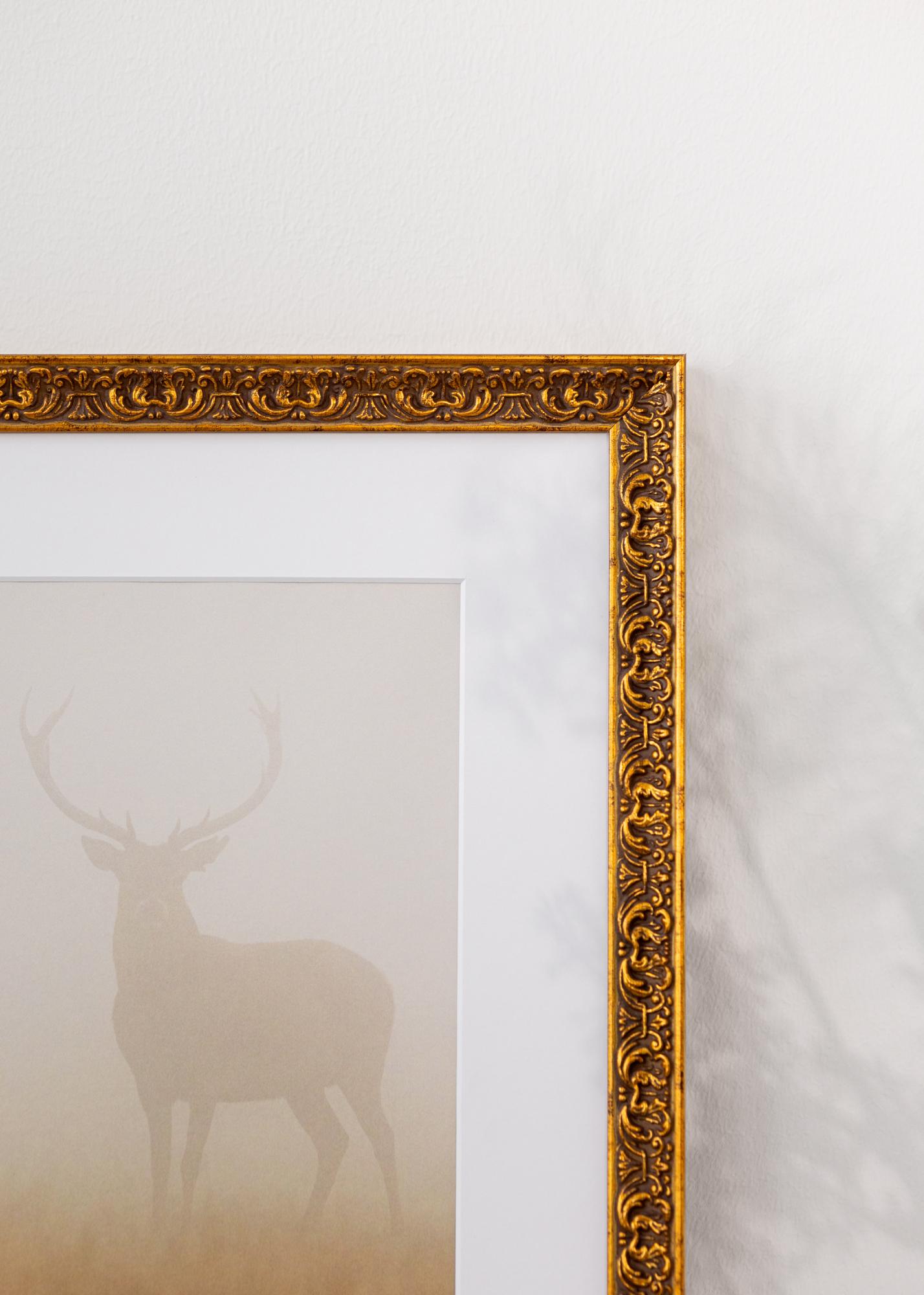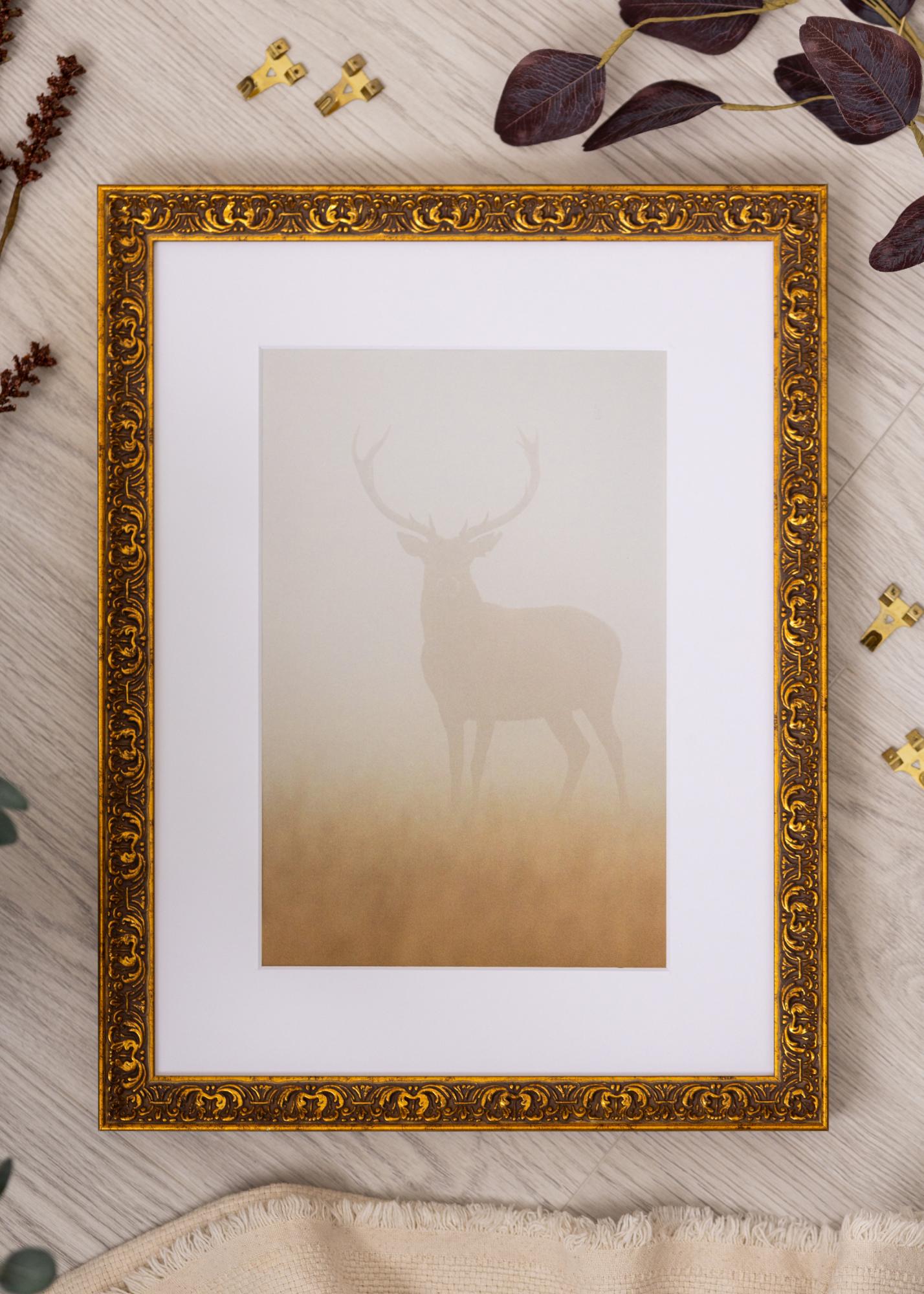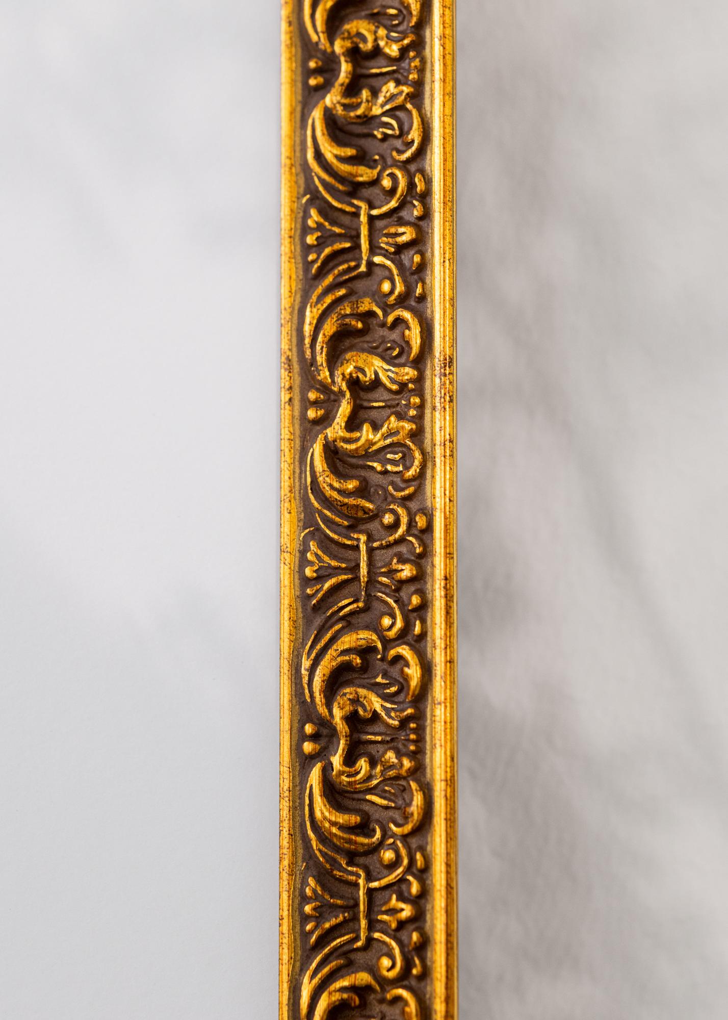 See elegantne kuldne pildiraam on täiuslik kombinatsioon traditsioonidest ja luksusest. Oma dekoratiivsete, ornamenditud detailide ja antiikse kuldviimistlusega annab see ajatu ilu tunde. Raam on ideaalne portreede, kunstiteoste või ajalooliste motiivide esiletõstmiseks ning selle klassikaline disain muudab selle suurepäraseks valikuks igasse koju.