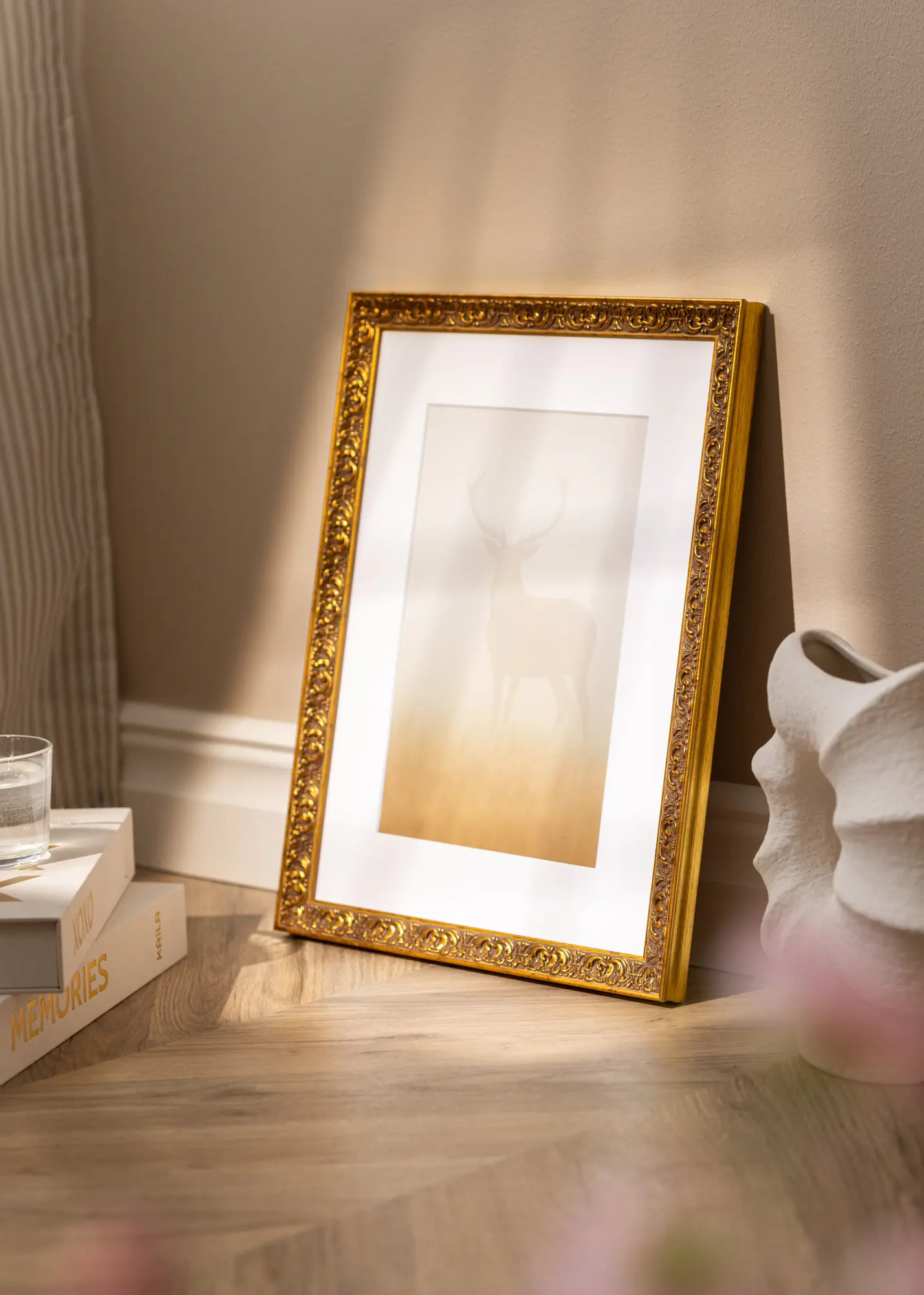 Tagamaks teie piltide parimat kaitset, on raam varustatud kristallselge ja purunemiskindla akrüülklaasiga. Akrüülklaasil on kaitsekile mõlemal küljel, mis tuleks enne kasutamist eemaldada, et tagada optimaalne selgus. Oma suurusega 42 x 59,4 cm on see kuldne raam suurepärane valik, et esile tuua oma kõige armastatumaid motiive stiili ja elegantsiga.