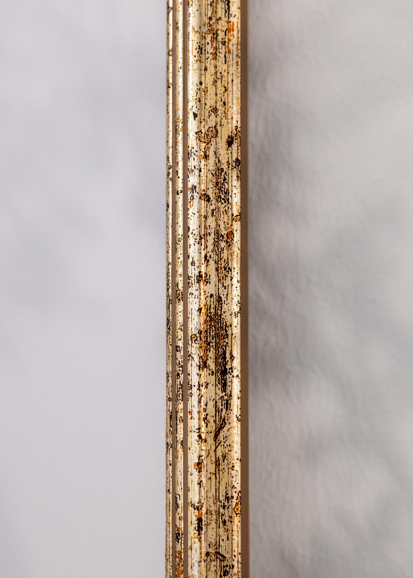 See elegantne hõbedane pildiraam on täiuslik kombinatsioon vintage-inspiratsioonist ja kaasaegsest funktsionaalsusest. Oma suurusega 21x29,7 cm (A4) on see ideaalne sinu lemmikfotode või kunstiteoste esiletoomiseks. Raam on valmistatud puidust ja sellel on antiikkuldne viimistlus koos vananenud patiinaga, mis annab sellele rustikaalse ja võluva olemuse. Profilitud pildiraamil on peened detailid ja kergelt kulunud pind, mis loovad klassikalise ja keeruka tunde.