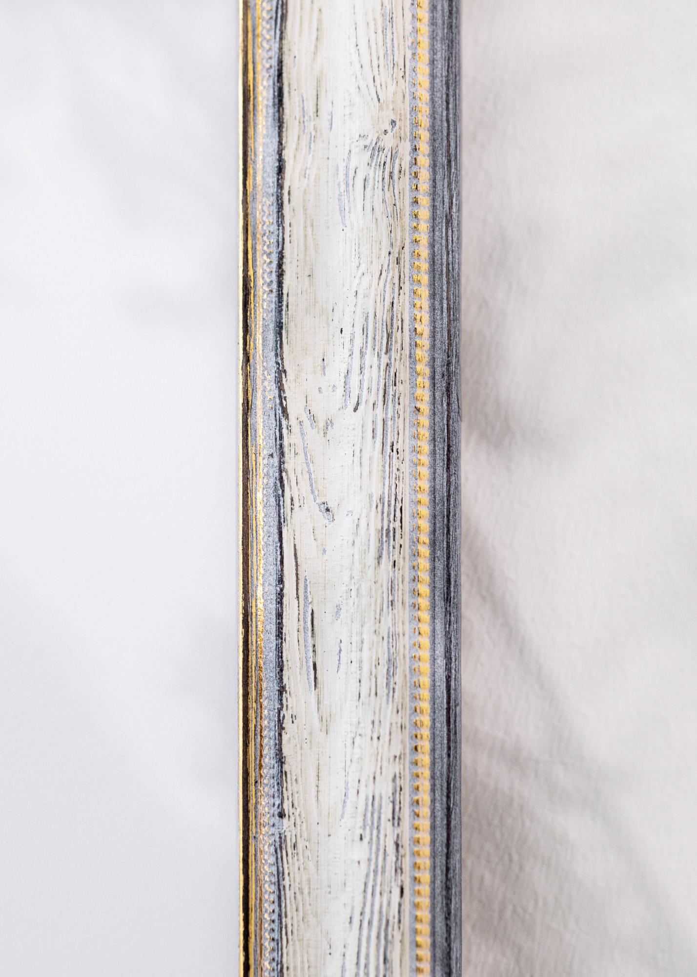 See ilus 30x40 cm suurune pildiraam on täiuslik vintage-inspiratsiooni ja kaasaegse elegantsi kombinatsioon. Valmistatud puidust, on raam koos rustikaalse valge ja halli viimistlusega, mis annab sellele sarmika vanaaegse ilme. Peenikesed kulddetailid siseküljel lisavad klassikalist hõngu, mis teeb raami suurepäraselt sobivaks nii maakoja- kui ka shabby chic sisustuses.