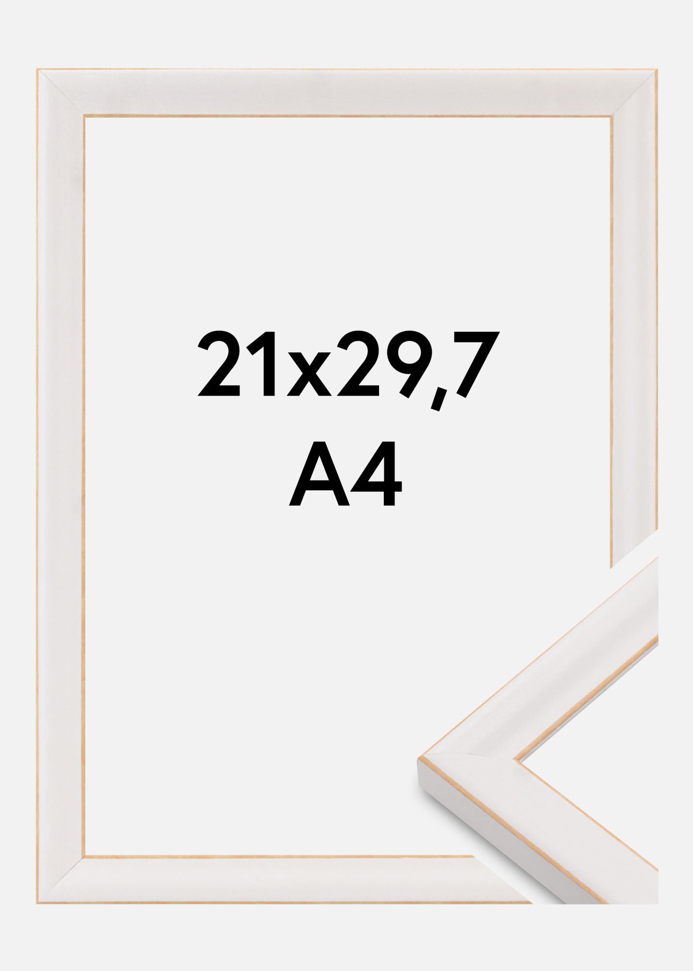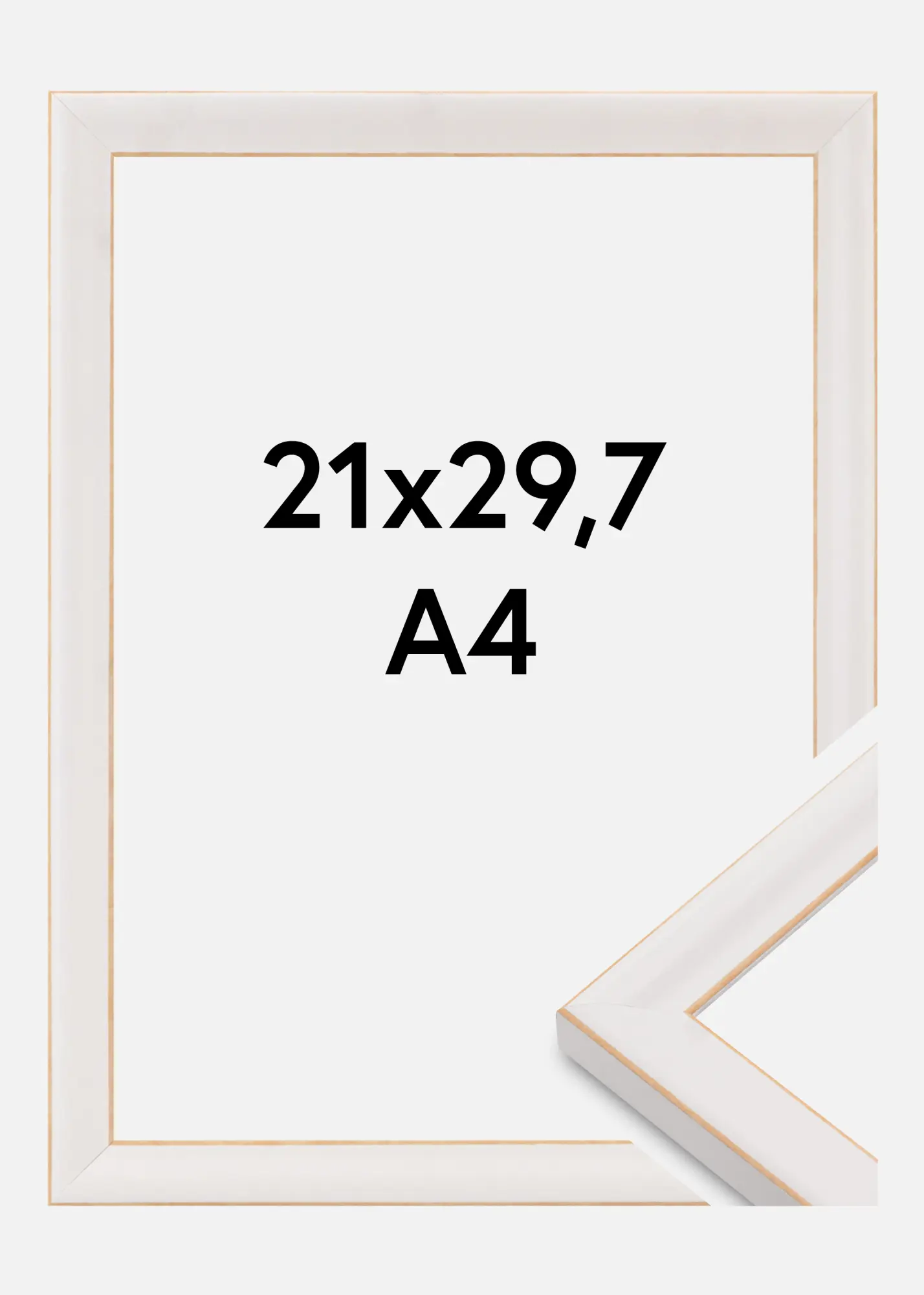 See elegantne fotoraam pehmes, kreemikas valges toonis õhukese kuldse servaga on täiuslik kombinatsioon stiilist ja funktsioonist. Rami suurus 21x29,7 cm (A4) sobib ideaalselt sinu lemmikkunstiteoste, fotode või mälestuste esiletõstmiseks ajatus stiilis. Peen kuldne detail sisemisel serval lisab eksklusiivset tunnet ja raamib pildi sofistikeeritult.