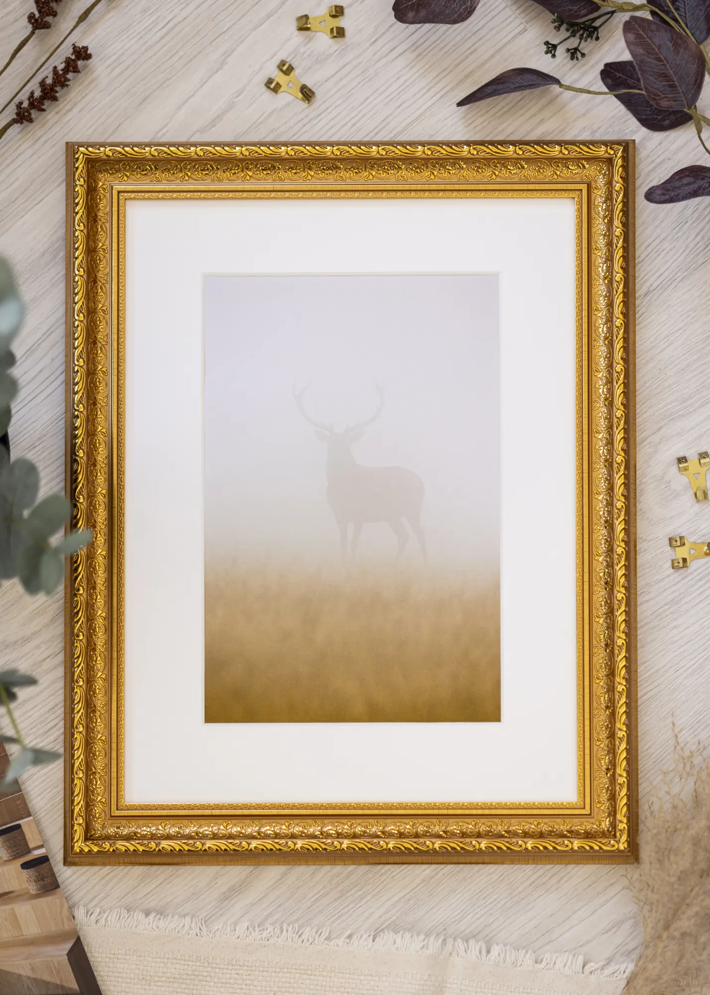 Muuda oma pilte kunstiteosteks meie kuldse elegantse raamiga, mis sisaldab valget passepartoud. See raam on loodud sobima suurusega 52x72 cm piltidele ja sellel on muljetavaldav 39 mm laius ning 25 mm sügavus. Oma välismõõtudega 66,6x86,6 cm on see silmapaistev detail seinal.