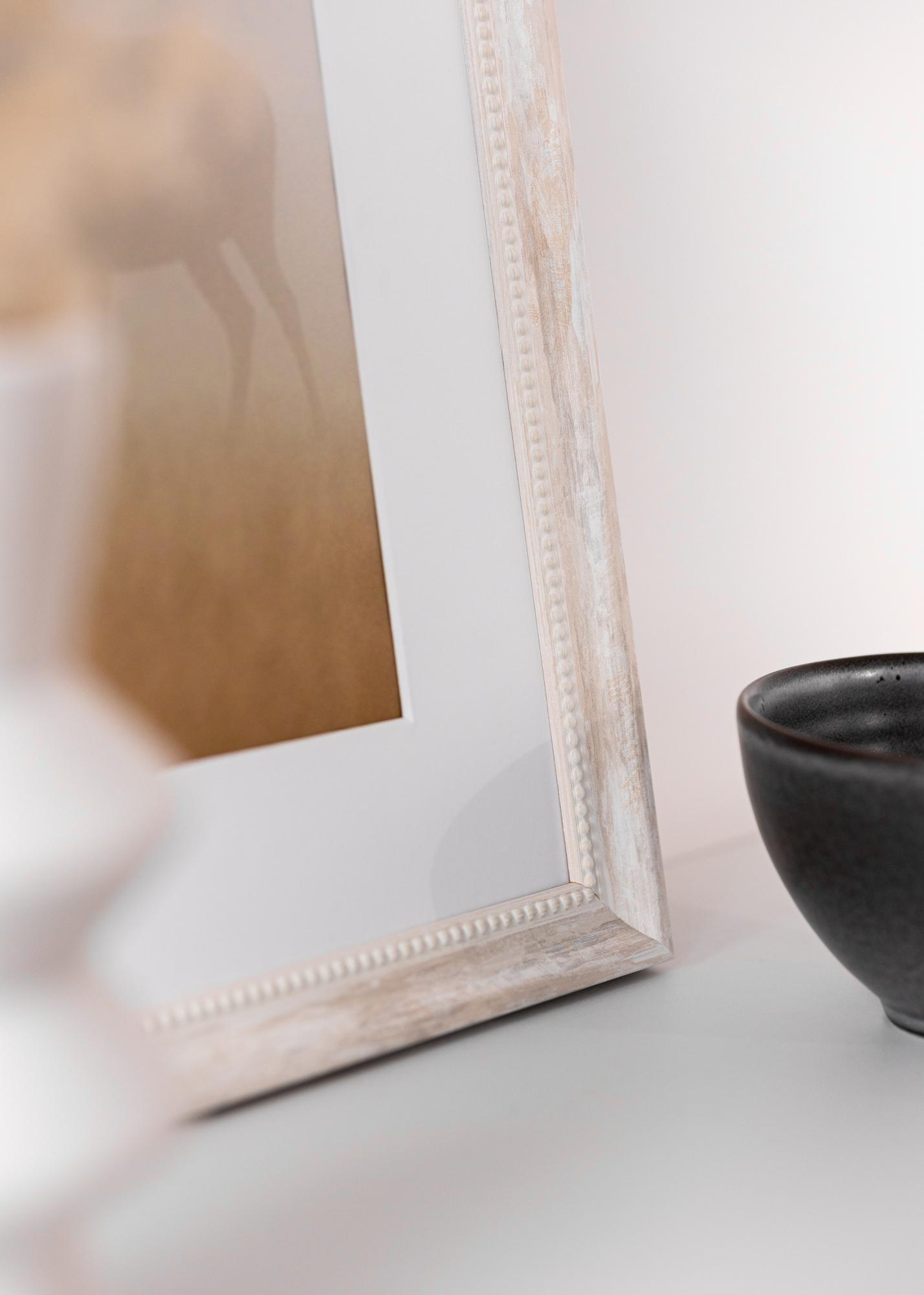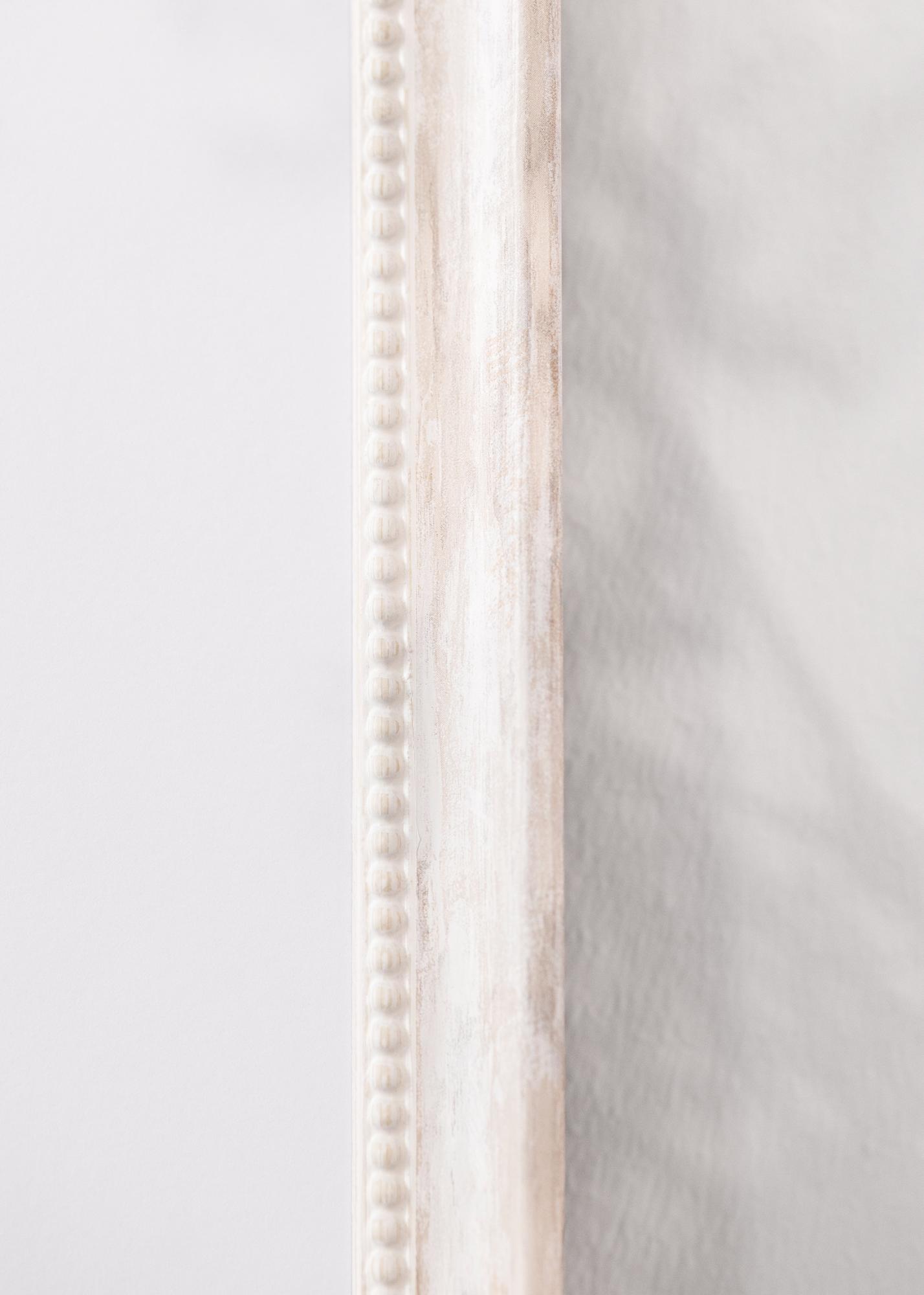 See kaunis 40x60 cm suurune pildiraam on ideaalne kombinatsioon rustikaalsest võlust ja stiilsest elegantsist. Oma valge värvi ja peene antiikse hõnguga on see suurepärane valik, et esile tõsta sinu lemmik kunstiteosed või fotod. Raami siseküljel kulgev dekoratiivne pärlidega kaunistus loob klassikalise ja detailse disaini, mis sobib nii moodsatesse kui ka traditsioonilistesse interjööridesse.
