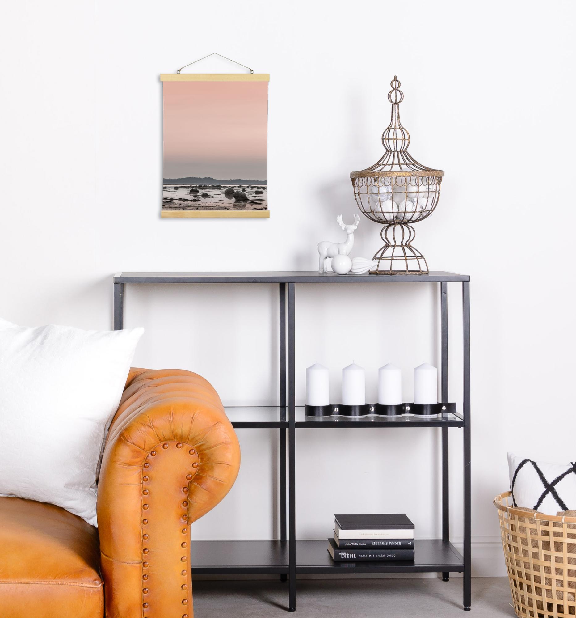 Aseta plakat või foto suurendus stiilipuhtasse plakatiriputisse! Lihtne ja nutikas konstruktsioon hoiab paberit sirge ja korralikuna, kahjustamata selle serva. See variant on valmistatud puidust ja sobib 25-30 cm laiustele motiividele.