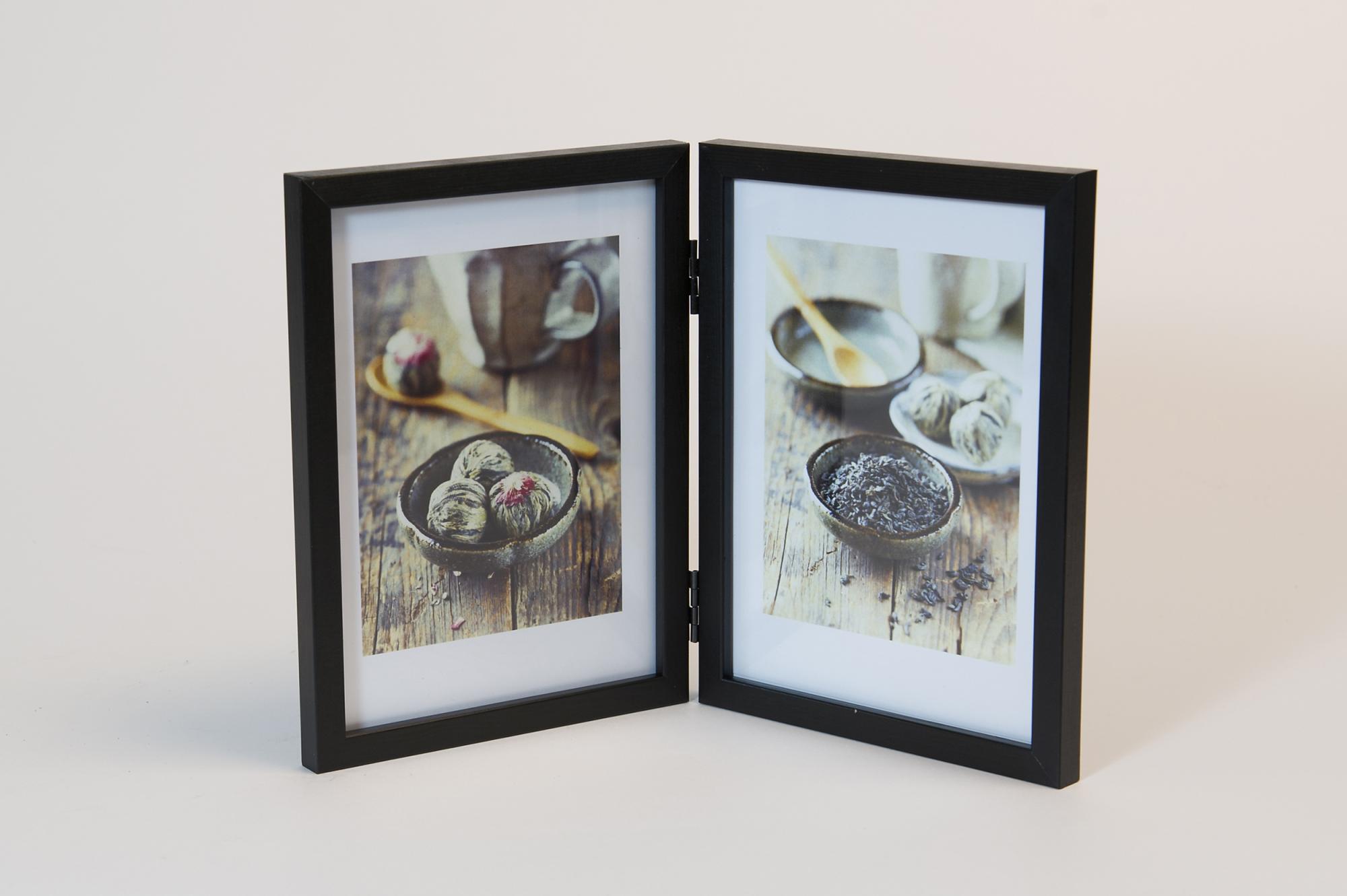 Jakk Must Vikram mahutab 2 fotot. Raamil on ruudukujuline modernne profiil, mis on valmistatud mustaks lakitud puidust.
