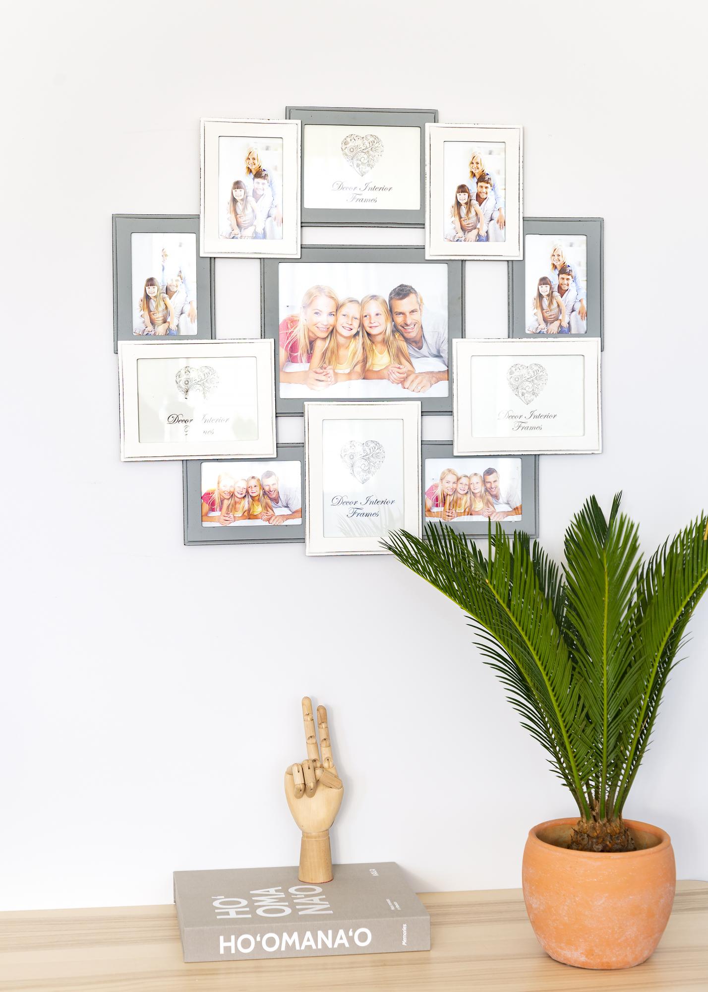 Kui otsid tugevat kollaažiraami, kuhu mahub palju erineva suurusega pilte, on Rouen üks meie lemmikutest. Sellel on koht ühe suure pildi jaoks suurusega 20x25 cm ja 10 väiksemat pilti, mis võimaldab luua just selliseid fotokollaaže, nagu ise soovid. Oma ajatu disainiga heledas hallis ja valges sobib see kollaažiraam peaaegu kõikjale. Raamil on seinakinnitused lihtsaks paigaldamiseks sellel suunal, nagu pildil näidatud.
