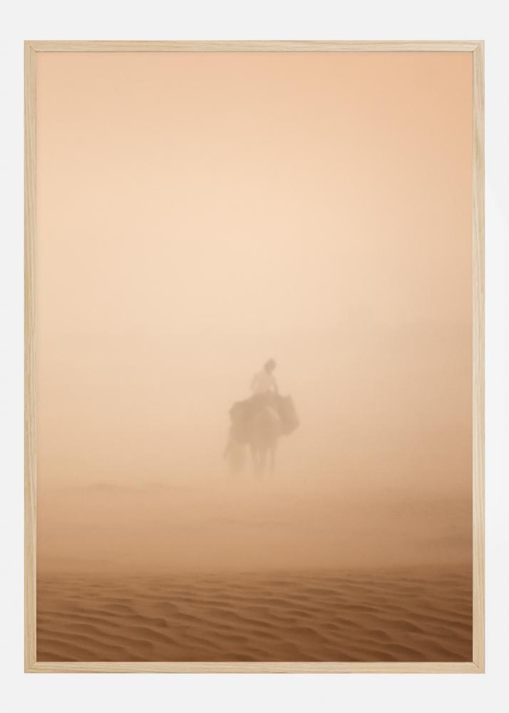 Soe plakat liivatormiga. Eesplaanil on näha kõrbe liiva, enne kui see kaob pehmete värvidega keerlevasse uttu. Keskel on näha vihmane kuju, mis ratsutades tormiga võitleb. Tunne kõrbe soojust.