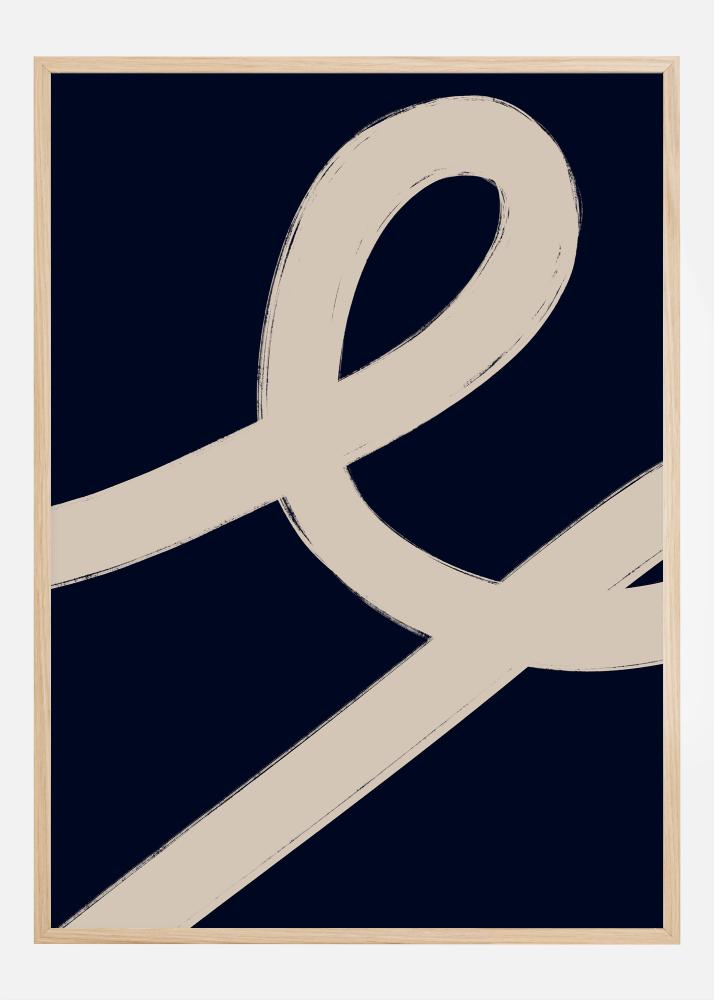 See minimalistlik ja kaasaegne plakat püüab skandinaavia disaini olemust oma puhta ja lihtsa kompositsiooniga. Suur, beež looklev joonemuster mängib sügavsinise taustaga, luues pildi, mis on nii rahustav kui ka visuaalselt huvitav. Kahe elemendi kontrast on rafineeritud ja annab tugeva graafilise efekti, mis toob esile abstraktse kunsti ilu.