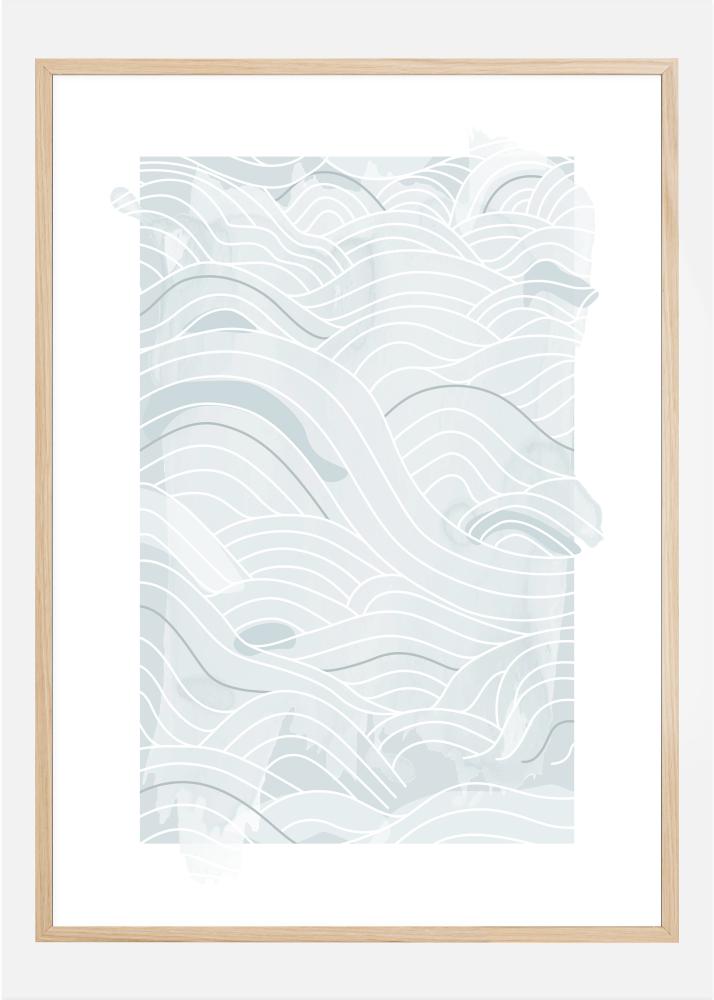 Mereposter koos pehmete siniste abstraktsete joonte ja lainetega valgel taustal. Erinevad sinised toonid ja erinevad joonepaksused on kombineeritud, et luua need lainelised lained üle lehe. Lase mõtetel rännata ja lase end haarata sellest pehmest meremustrist.