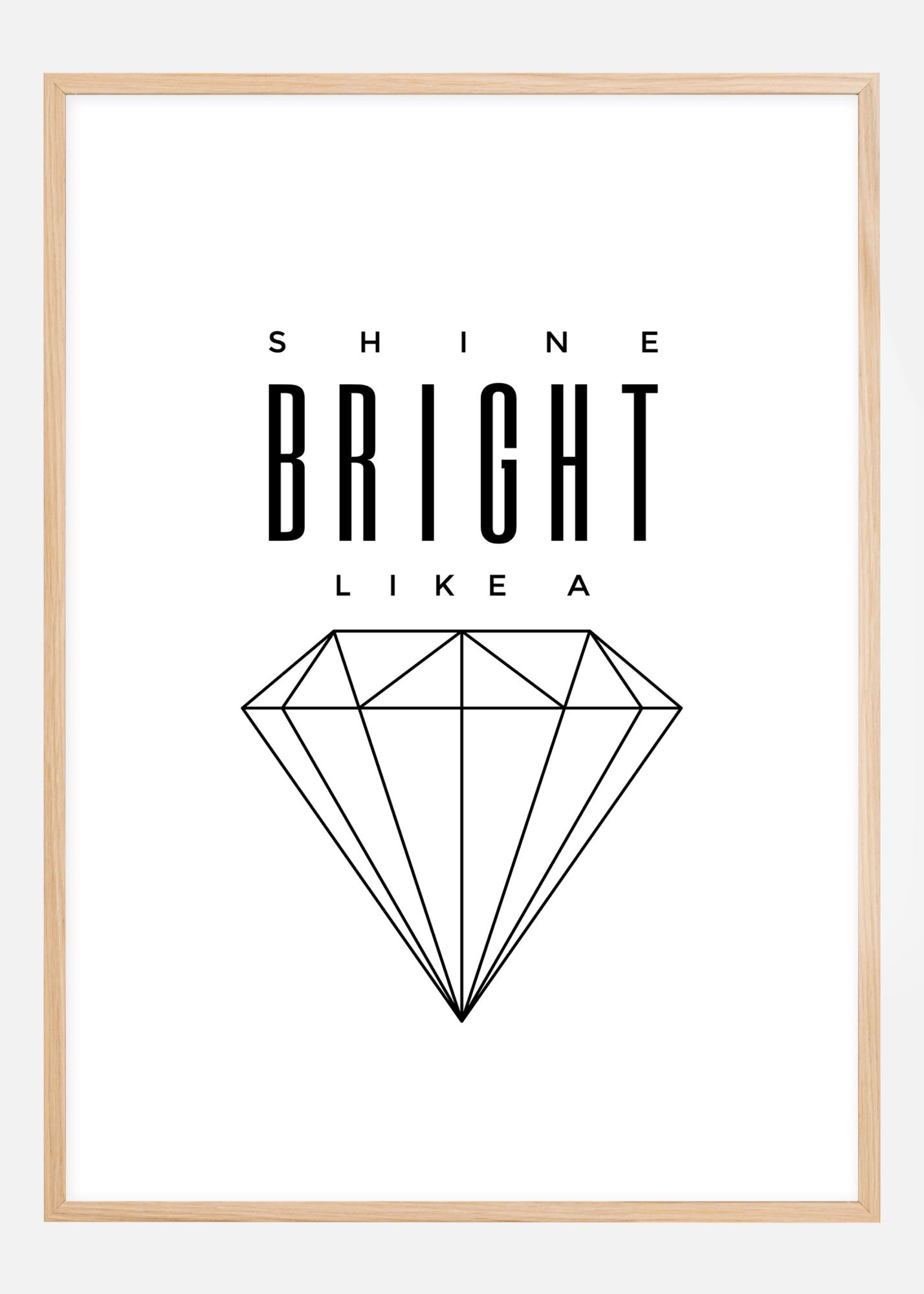 Tuleta endale meelde, et alati tuleb särada nagu teemant, isegi kui tunned end seestpoolt tuimana. Selle stiilse postri armastamiseks ei pea olema Rihanna fänn. Plakatil on stiilne mustvalge disain, mille keskel on graafiline teemant. Teemandi kohal on tekst "Shine bright like a" trükitud mustade elegantsete tähtedega. Kuna plakat on saadaval mitmes erinevas suuruses, leiad hõlpsasti selle, mis sobib täpselt sinu seinale. Loo luksuslik tervik, täiendades seda meie suurest valikust musta või kuldse raami abil.