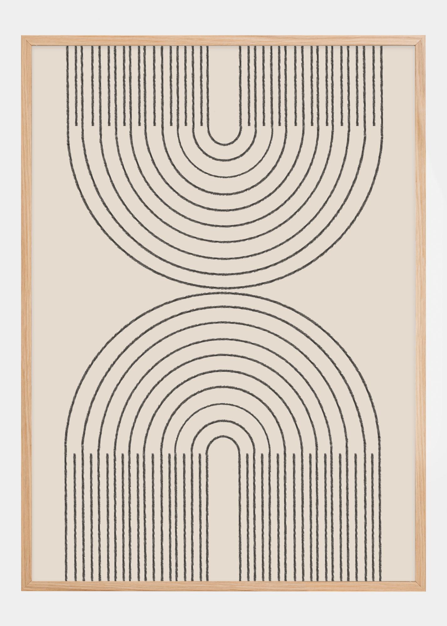 See minimalistlik poster tabab lihtsuse olemust oma tõhusa arhitektuurilise disainiga. Täpselt joonistatud stiilsed kaared loovad rahu ja struktuuri tunde, samas kui musta valgel taustal pakub selget visuaalset kontrasti, mis on nii julge kui lihtne. See kunstiline esitus on nii kaasaegne kui ajatult, sobides erinevate sisekujundusstiilide jaoks.