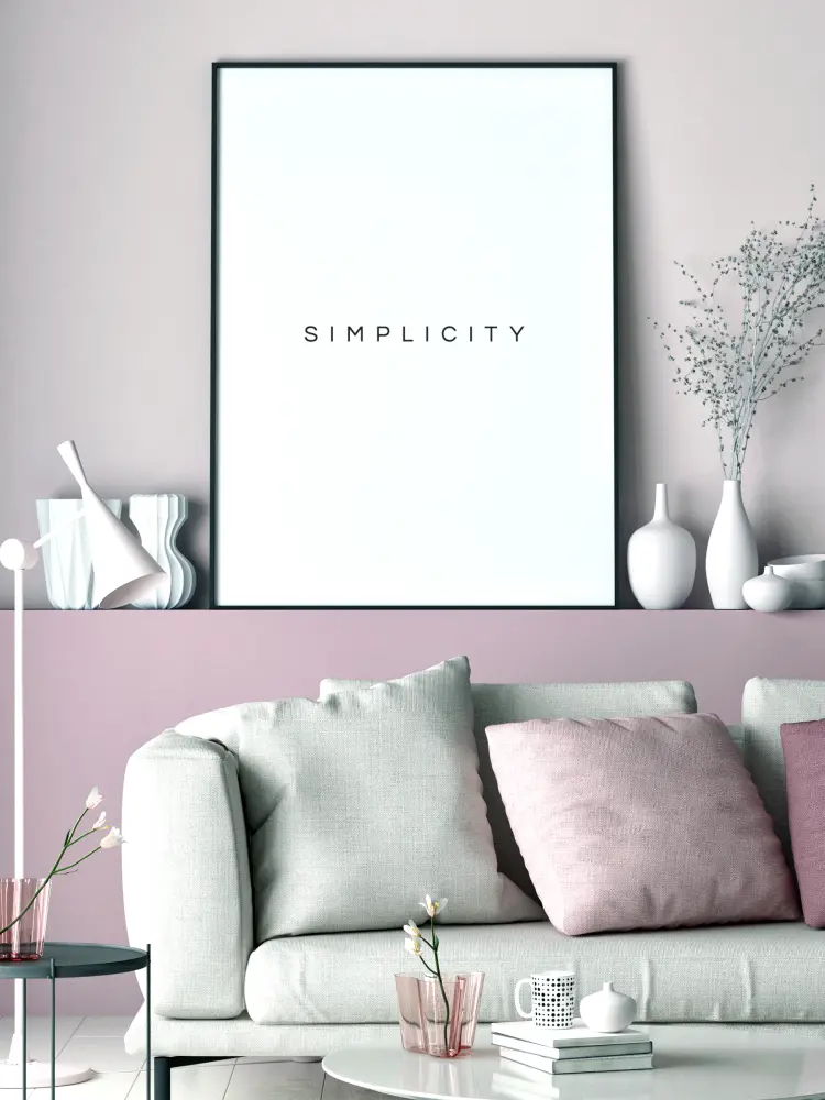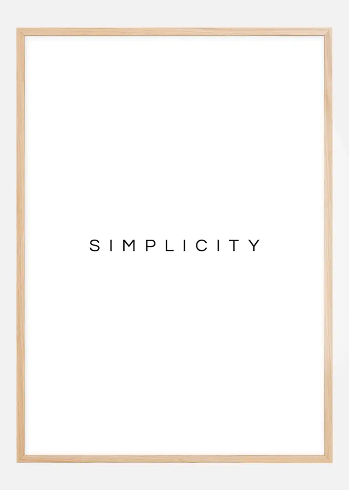 Minimalistlik tekstiplakat sõnaga "Lihtsus", mis on kirjutatud mustaga valge pildi keskel. Ei mingeid uhkeid fonte siin, nagu sõna vihjab, on kõik siin lihtne. Säilita minimalistlik meeleolu ja riputa see tavalisele seinale, et järgida selle pildi nõuandeid.