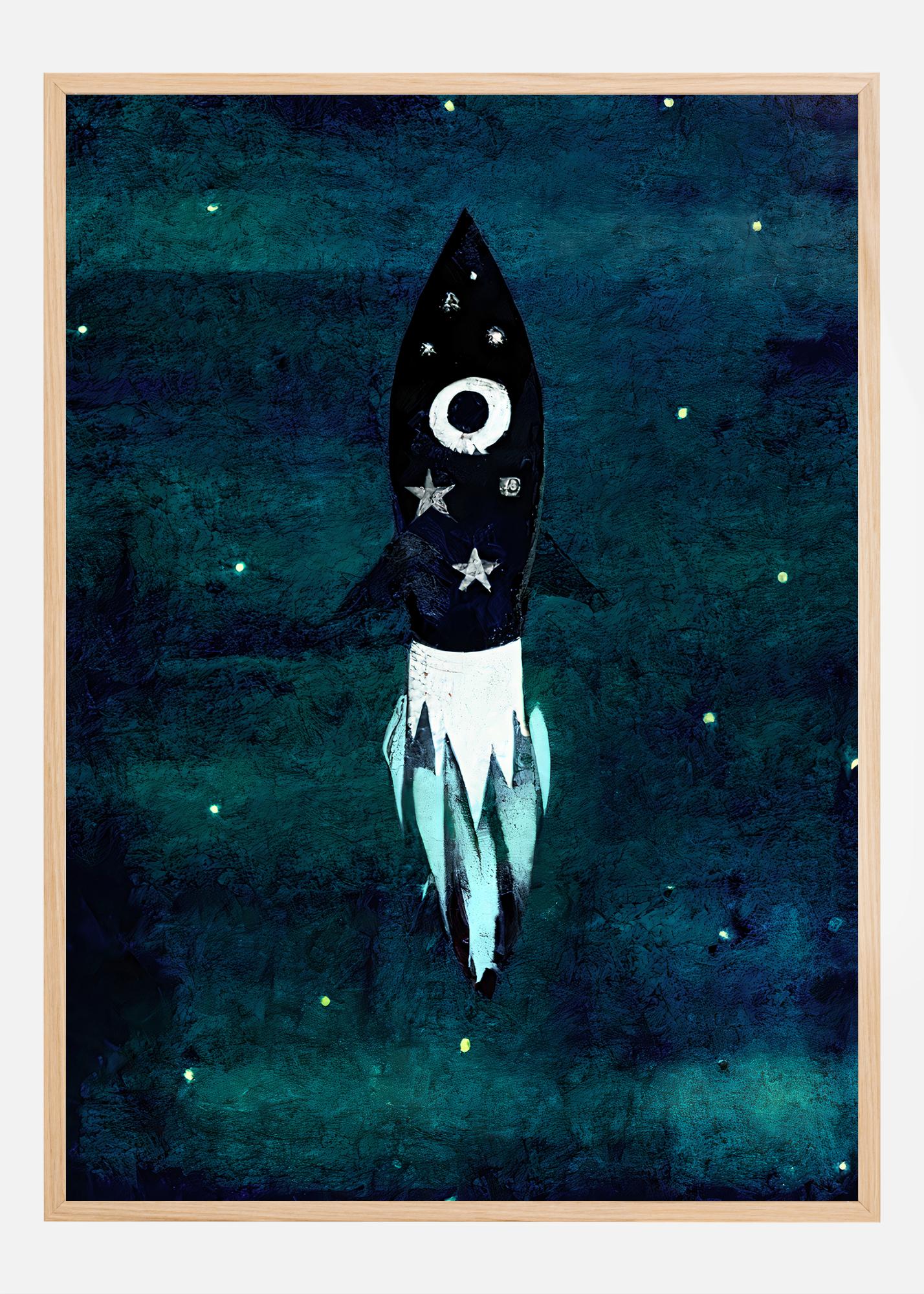 Esiletõstke tähevalgustatud fantaasiat selle plakatiga, mis kujutab raketti avastusretkel läbi värviküllase kosmose. Sügav küllastunud sinine taust on kaetud täppiutega, mis sarnanevad tähtega ja loovad lõpmatu ruumi illusiooni. Rakett ise, kaunistatud hõbetähtede ja kuuga, kujuneb inimkonna unistuse sümboliks kosmoselendudest ja tundmatu avastamisest.