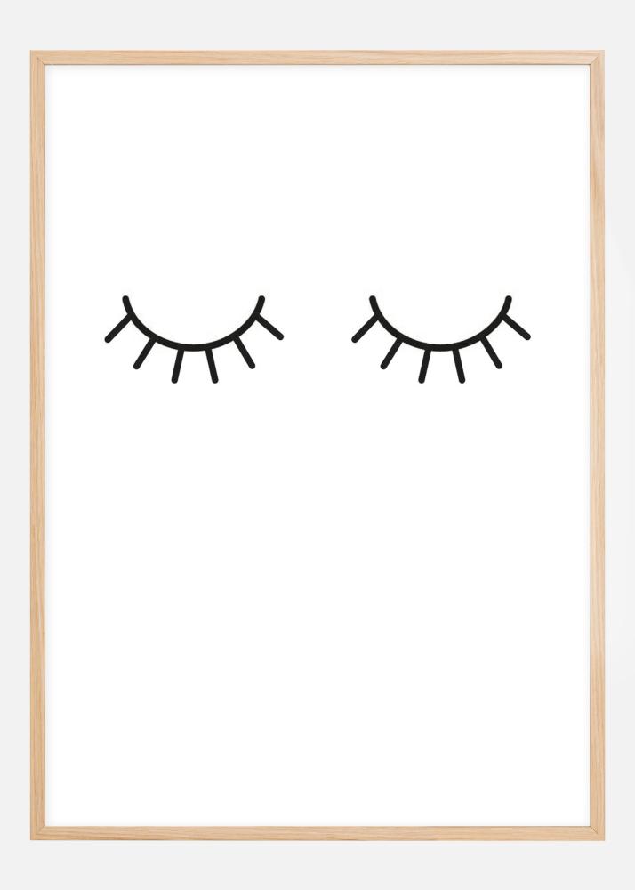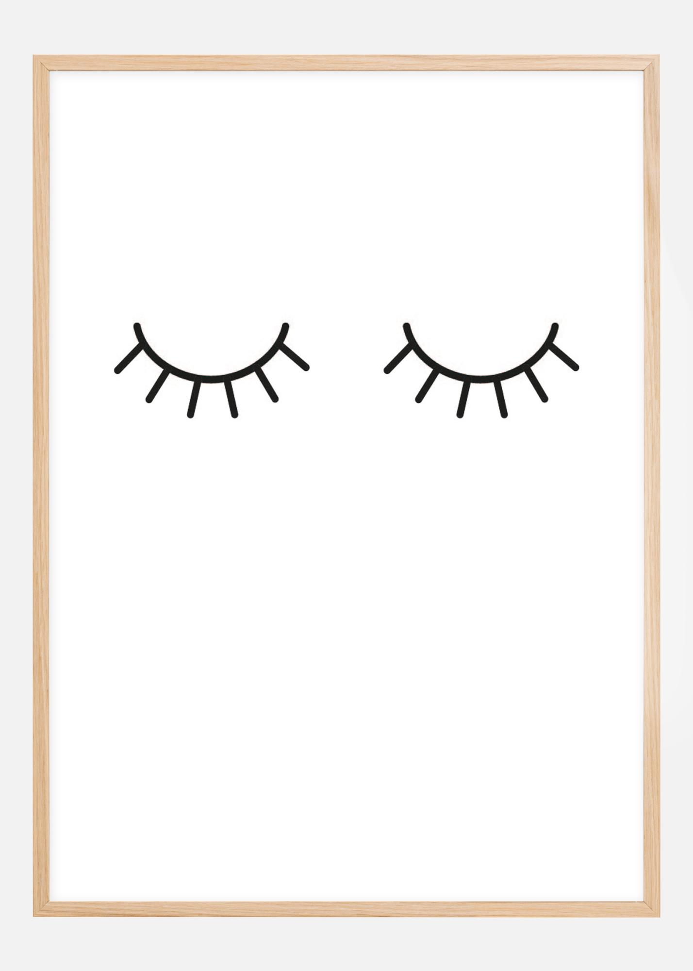 Minge stiilipuhtalt ja lihtsalt lastetoas selle armsa postriga! Motiiv kujutab suletud silmi pikkade ripsmetega. Kuna see on mustvalge, on seda lihtne sobitada raami ja muu sisustusega.