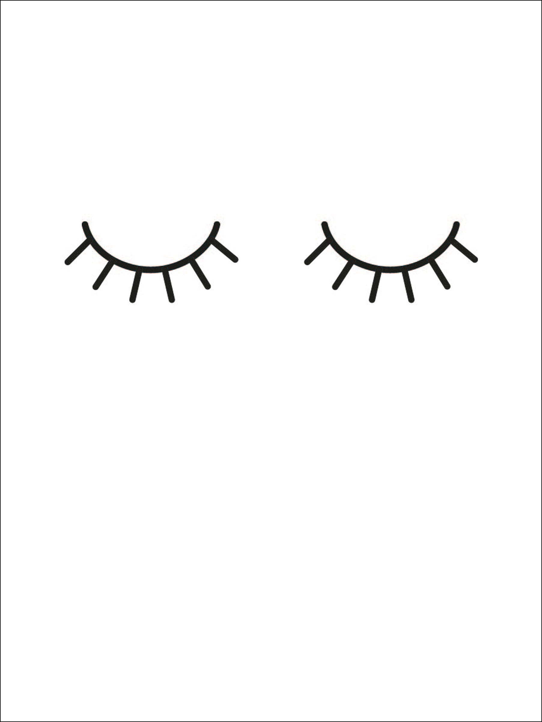 Minge stiilselt ja lihtsalt lastetoas selle armsa postriga! Motiiv kujutab suletud silmi pikkade ripsmetega. Kuna see on mustvalge, on seda lihtne sobitada raami ja muu sisustusega.