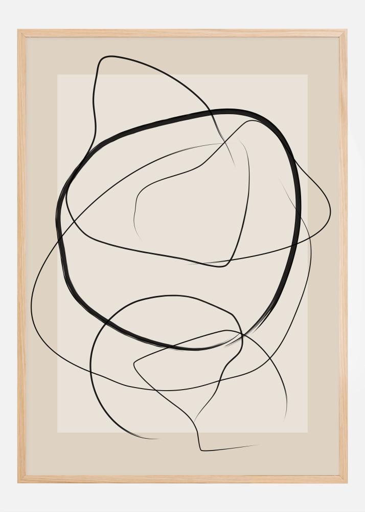 See kaasaegne poster on osa meie kunstikogust ja esitleb sarja pehmeid, voogavaid jooni, mis moodustavad abstraktse ja mediteeriva kompositsiooni. Mustad jooned voolavad vabalt üle beeži tausta, luues liikumise ja rütmi tunde, samal ajal kutsudes vaatajat lühikeseks kontemplatsiooniks. See minimalistlik, kuid julge kunst on ideaalne neile, kes hindavad abstraktse väljenduse jõudu, et avada isiklikku tõlgendust ja sisemist refleksiooni.
