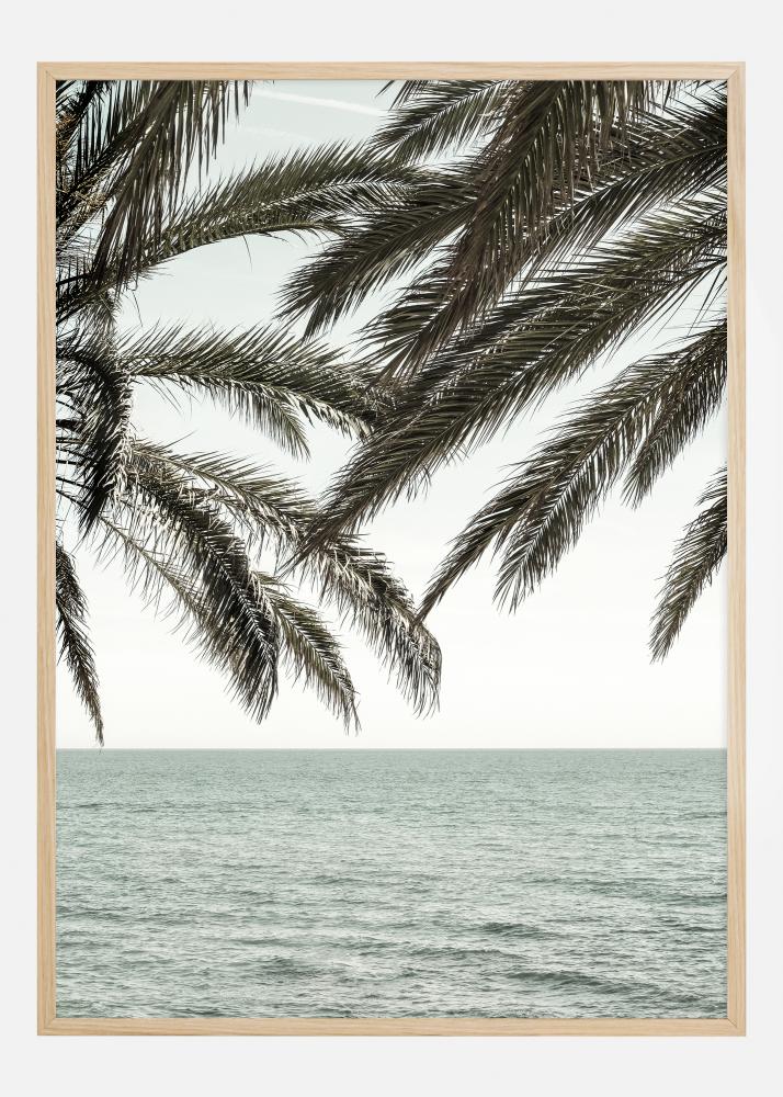 See poster toob rannaelu rahuliku tunde otse teie koju. Palmilehed raamivad rahulikku merevaadet ja taevast viisil, mis püüab ranniku maastiku ainulaadse ilu. Palmide rahustav roheline värv kontrasteerub looduslikult mere sinise ja taeva valgusega, luues harmoonia ja igavikulisuse tunde.