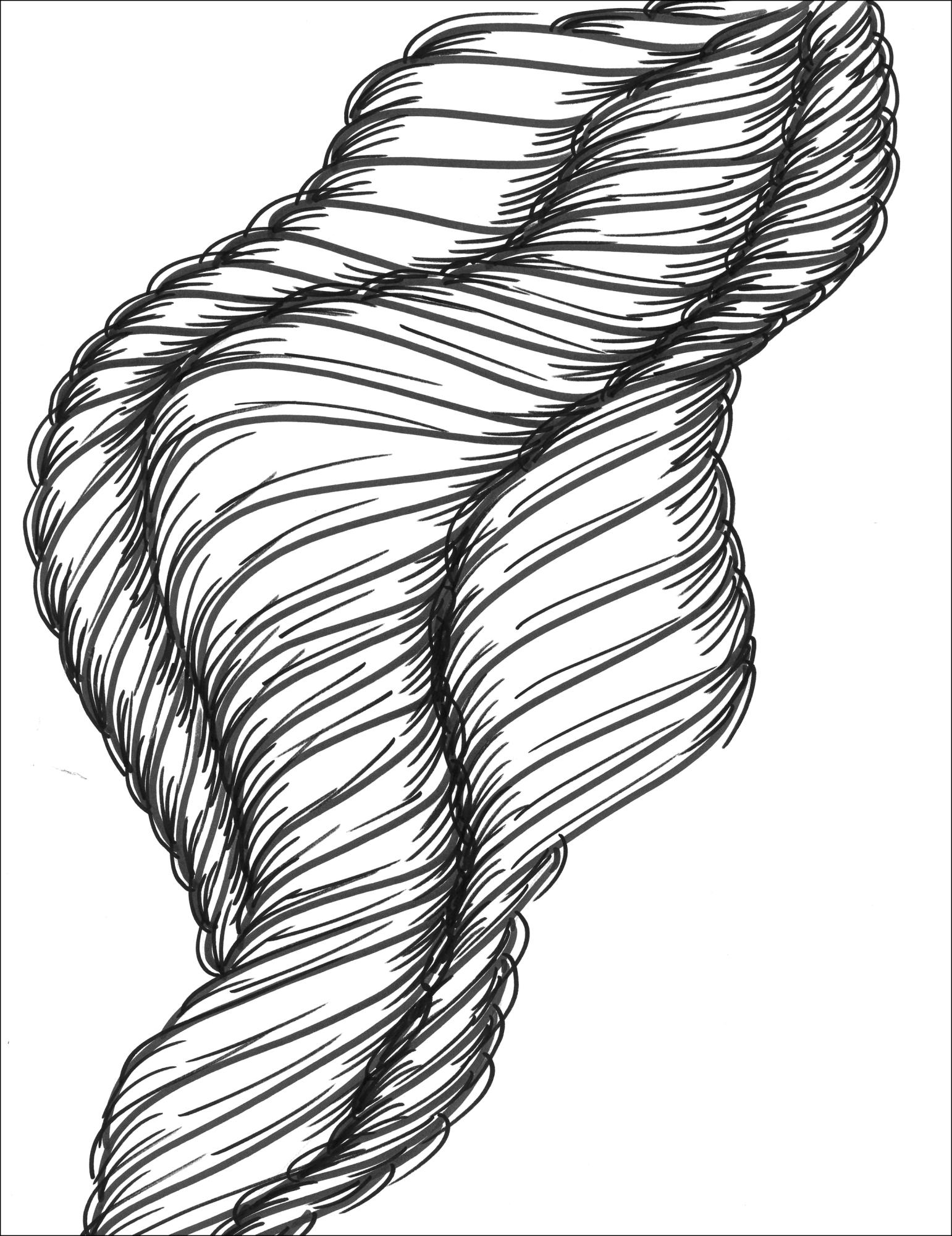 Keerlev abstraktne plakat mustade joontega, mis põimuvad, et luua tornaado kuju. Kolm musta joonespiraali keerlevad kokku valgel taustal. Paksud ja õhukesed jooned loovad peaaegu liikuva pildi, mis toob pilgu teosele, kui see liigub sellest üle.