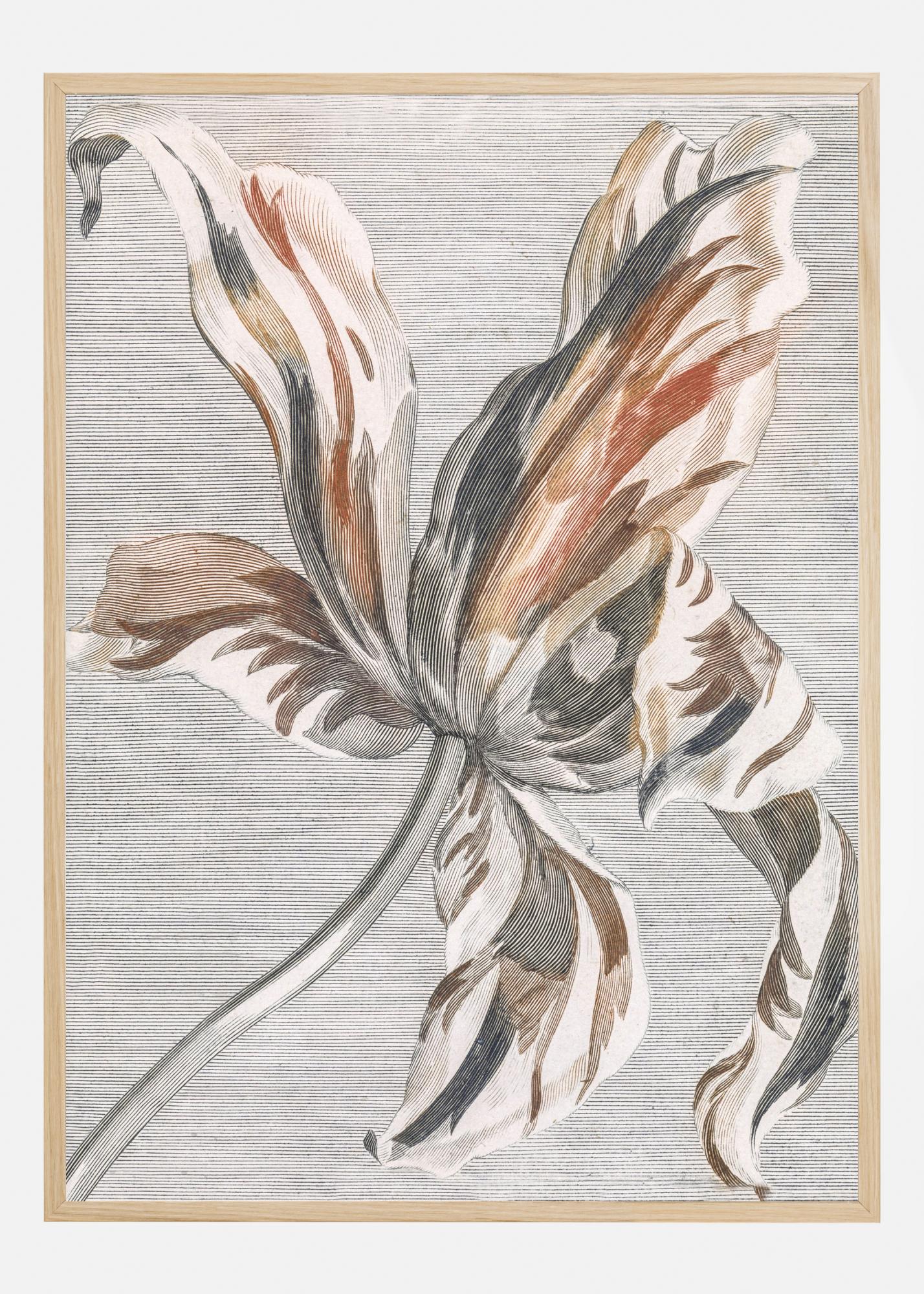 Lilleline plakat julge triibulise lillekujutisega punases, valges ja hallis. Voogavad pintslitõmbed järgivad kroonlehtede jooni, et luua teoses elu. Sobita plakatil olevad tugevad punased värvid seina värviga, kuhu sa selle riputad, et saada veelgi elavam efekt.