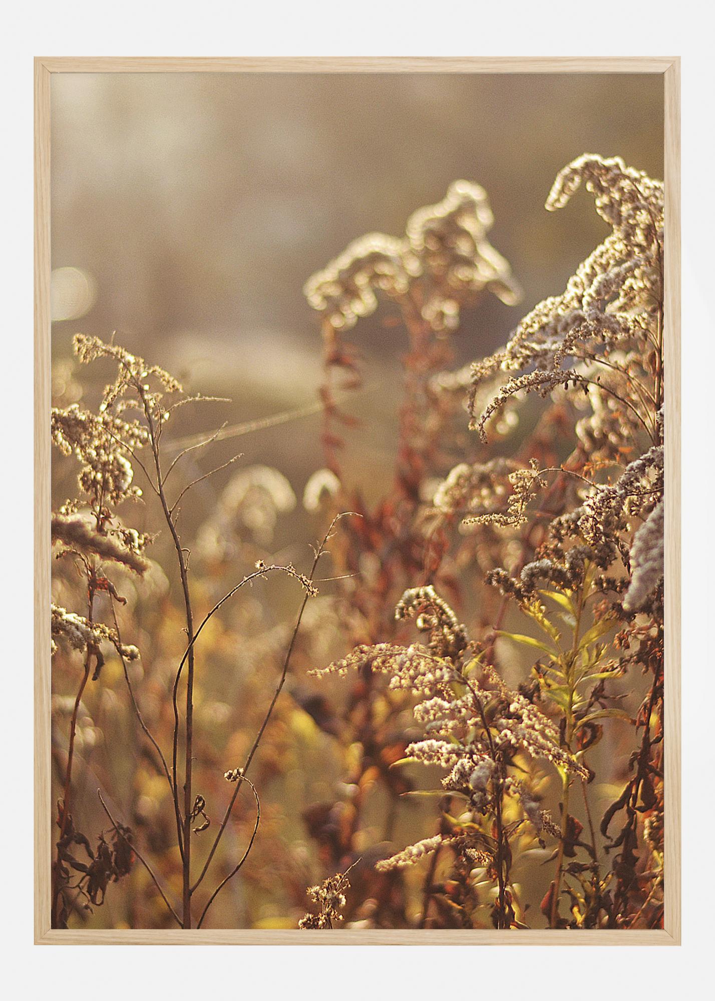 Suveposter pehme rohuga, mida valgustab suvepäike. Rohu lehed ja varred omandavad maagilise kuldse tooni, kui päike loojub. Roka õrnad osad on teravalt fokusseeritud, luues imelise sügavuse ja detailsuse selles pehmes pildis, kus sa võid peaaegu tunda sooja õhku.