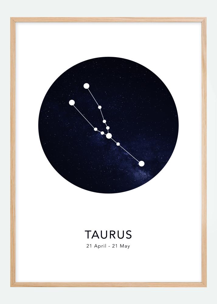 Kingitusena isiklik maali kellelegi, kellest sa hoolid! See stiilne plakat kannab Härjast tähtkuju motiivi musta ja sinise tähetaeva taustal. Allpool on nimi koos kuupäevadega inglise keeles.