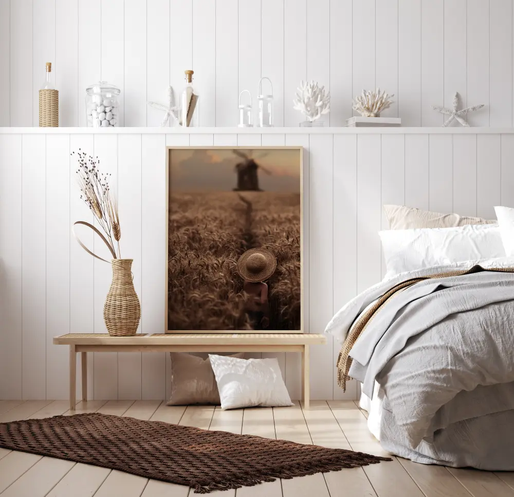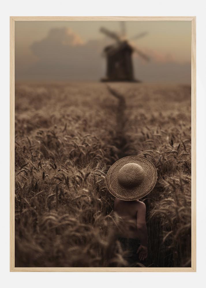 Portreepilt poisist nisupõllul, taustal tuuleveski. Pehmed kollased ja roosad värvid loovad tõeliselt rahuliku meeleolu. Julge liikuda koos poisiga selle tuuleveski poole selle pildi abil.