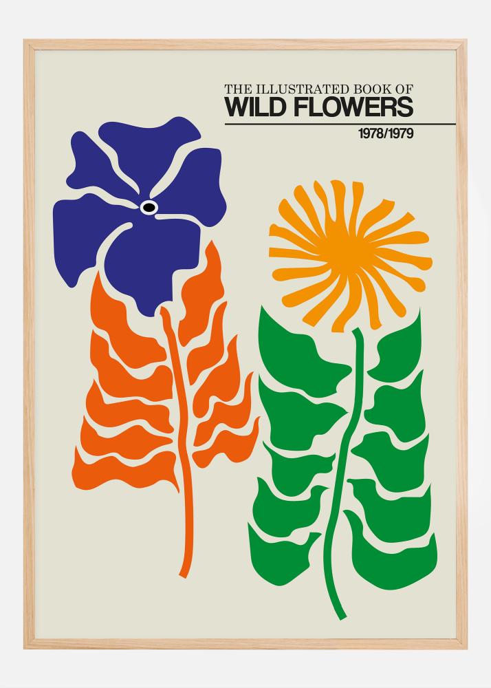 Astuge looduse poole lilletaimede värvikirevasse maailma 'The Illustrated Book of Wild Flowers' plakatiga. See särav ja energiline poster on sarjast, mis uurib metsikult kasvava floora laitmatut ilu. Sellel mahul saame nautida kahte lille; üks neist on armsa sinise kroonlehega, mis vibreerib kõrbenud oranzhi lehtede siluetti vastu, ja teine on kiirgav lilleke, millel on erksalt kollased kroonlehed rikkaliku rohelise lehestiku taustal. See kunstiteos esindab ajaperioodi 1978/1979, võib-olla aega, mil need lilled õitsesid eriti lopsakalt.