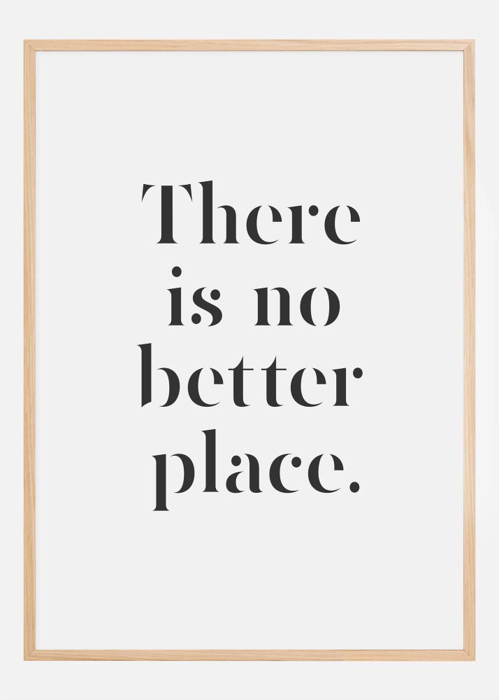 Avastage meie minimalistlik ja stiilne poster, mis edastab rahu ja kodutunde oma lihtsa sõnumiga "There is no better place". See modernne kunstiteos on ideaalne neile, kes hindavad skandinaavia disaini ja selgeid, kuid võimsaid sõnumeid oma kodusisustuses. Kujundus, mis piirdub klassikalise musta tekstiga valgel taustal, muutub ajatuks sisustuselemendiks, mis sobib nii kaasaegsesse kui ka traditsioonilisemasse koju.