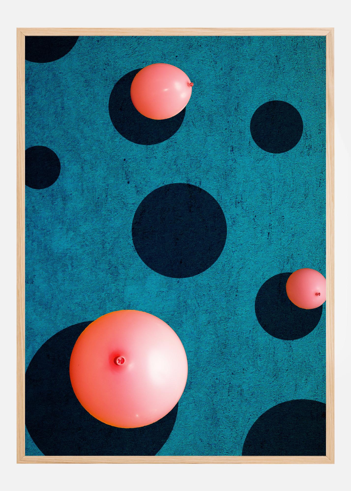 Elav plakat kolme oranži õhupalliga sinisel taustal. Iga õhupall heidab taustale tumeda varju. Kuid on ka rohkem tumesiniseid varjurõngaid. Teised õhupallid peavad hõljuma kuskil kõrgemal selles kummalises, kuid paeluvates täppidega plakatil.