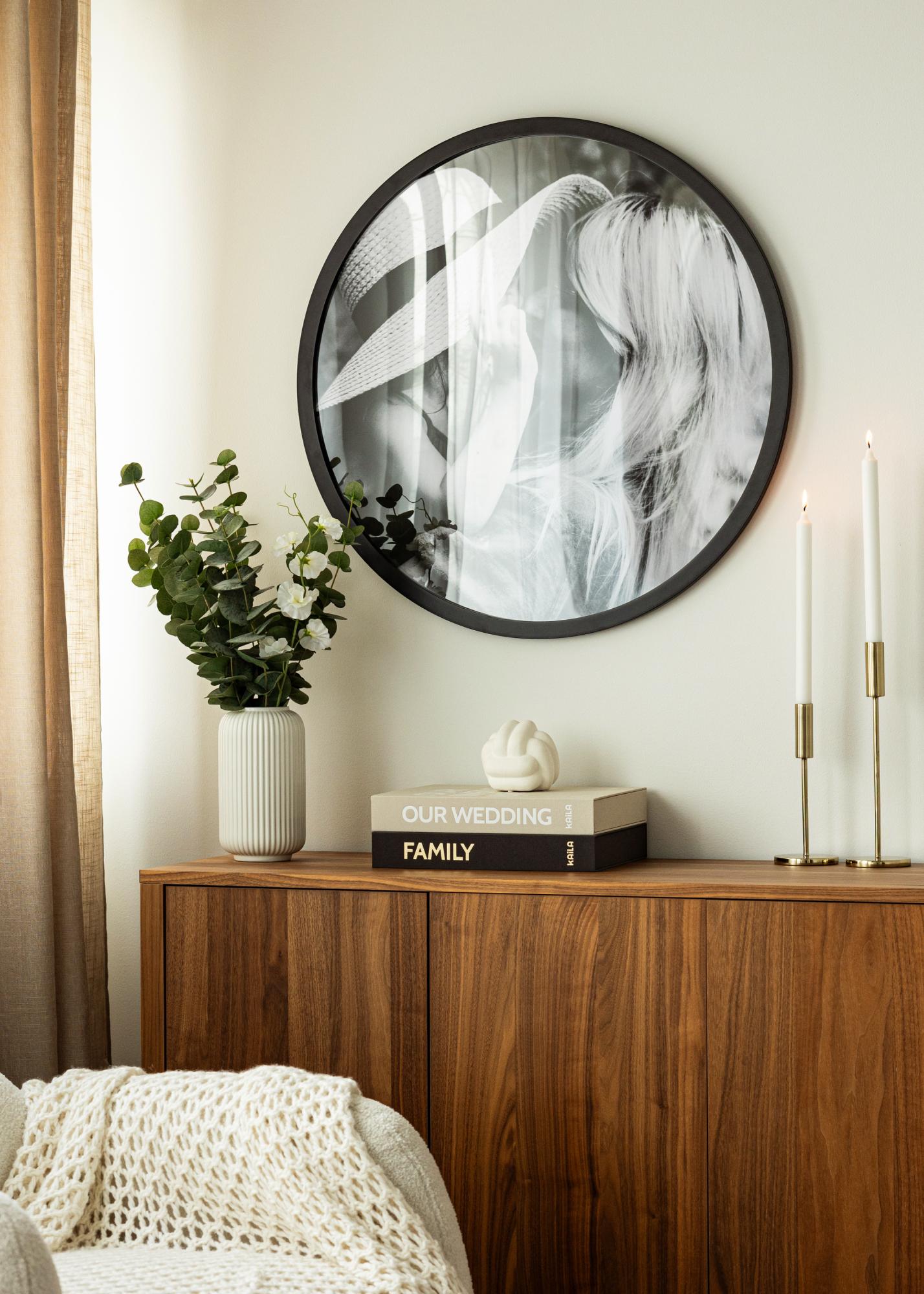 Anna oma seintele kaasaegne puudutus selle elegantse musta ümmarguse fotoraamiga. Läbimõõduga 50 cm Ø on see iga toa pilkupüüdev element. 20 mm lai ja 18 mm sügav raamiliist pakub stiilset raamimist sinu lemmikfotodele või kunstiteostele.