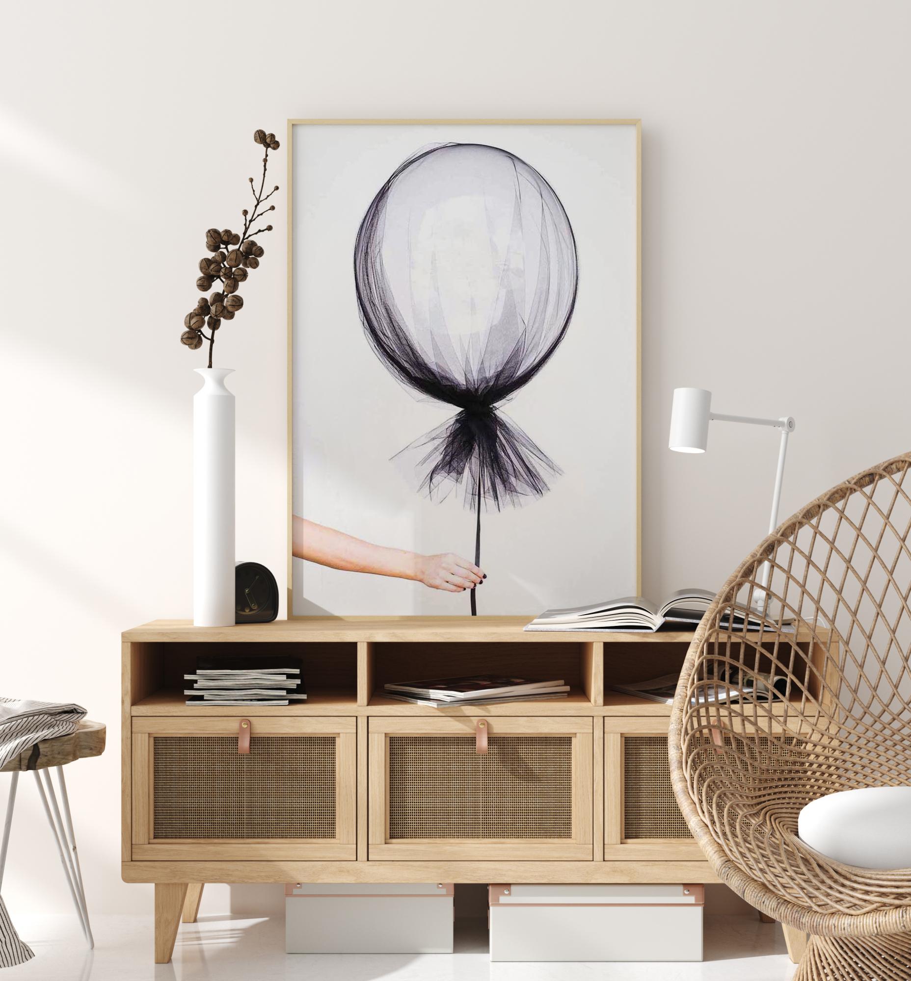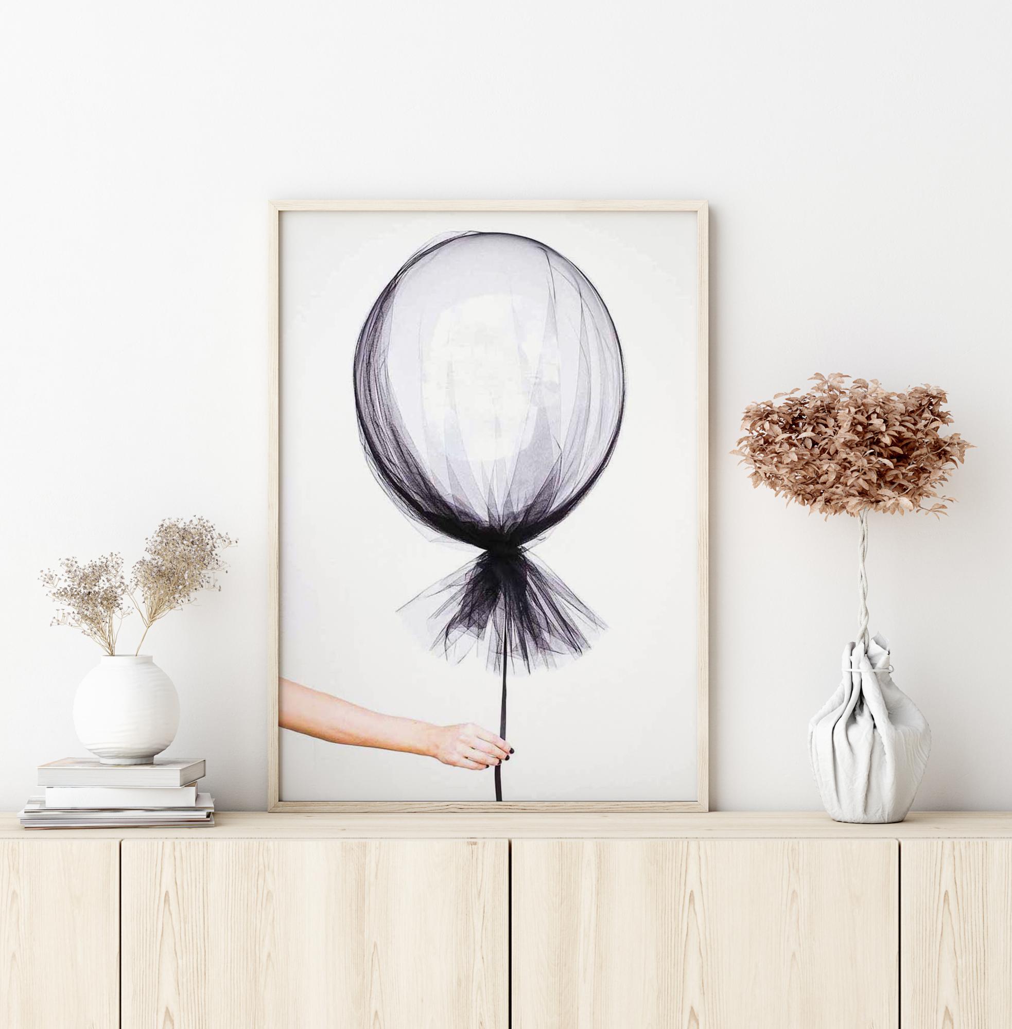 Kaunis fotograafiakunst käest, mis hoiab õhukese läbipaistva kangaga ümbritsetud hõljuvat õhupalli. Võluv poster, mis kannab endas mõnusat segu kergemeelsest lustlikkusest ning õrnusest ja haprusest. Sobib hästi nii lastetuppa kui ka kaasaegsesse koju.