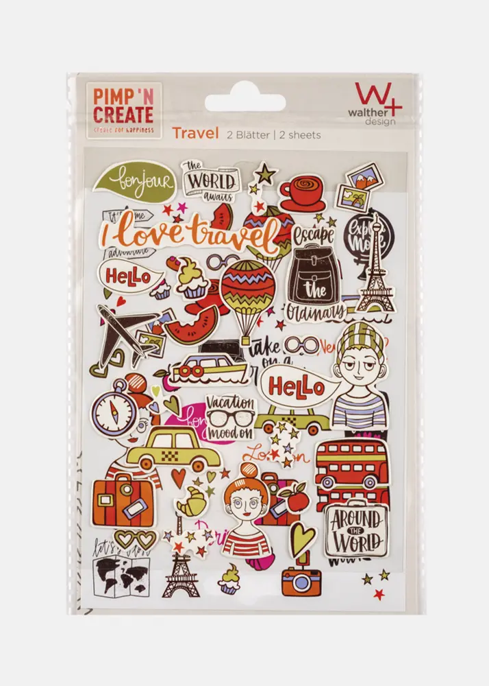 Isekleepuvad kleebised reisiteemalised. Ideaalne loominguliseks fotoalbumite kujundamiseks, kingituste kaunistamiseks või õnnitluskaartide loomiseks. Pakend sisaldab 1 lehte 3D-kleebiseid ja 1 lehte tavalisi kleebiseid.