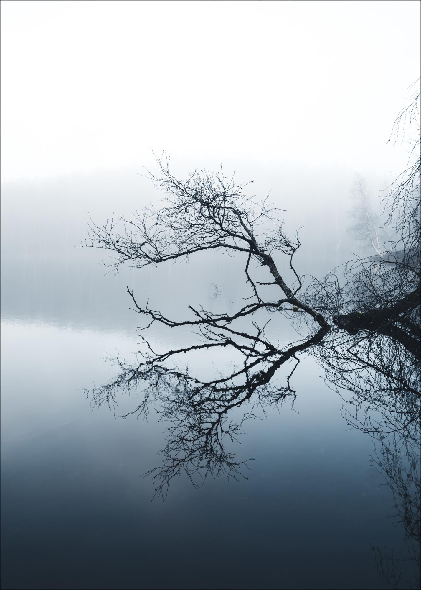 Valge plakat, millel on lai rahulik järv, millest tõuseb surnud puu. Kui oks painutab end ülespoole, jätab see oma peegelduse järvele ja loob imelise peegelpildi. Valge taevas üleval aitab eristada tegelikku oksa ja selle peegelpilti. Sinised toonid annavad soojale seinale jahedama tunde.