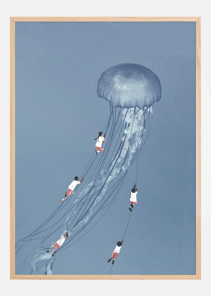 Selle poeetilise ja unistava plakatiga on kujutatud inimesi, kes kiiguvad hiiglasliku meduusi kombitsatel, hõljudes lõputus sinises taevas. See paeluv stseen on austusavaldus fantaasia jõule, kus alateadvus ja unenäomaailm põrkuvad ärkveloleku reaalsusega. Inimeste kaalutu tants meduusiga sümboliseerib rõõmu, vabadust ja muretu kergust, mis sageli esineb laste mängulistes maailmades.