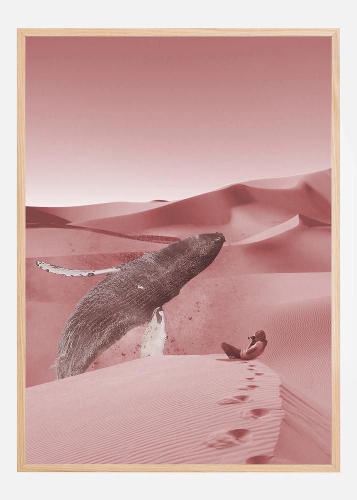 Unistage end surrealistlikusse maailma selle kunstilise plakatiga, kus võimas vaal tõuseb roosade liivaluidete lainekujulise maastiku seest. See ootamatu kombinatsioon mere hiiglasest ja kõrbe lainetavatest mägedest esitab väljakutse reaalsusele ja kutsub vaataja fantaasiamaailma. Roosakas toon, mis läbistab pilti, loob rahu ja mängulisuse tunde, samal ajal kui selged jalajäljed juhatavad meid avastamist ootavasse loosse.