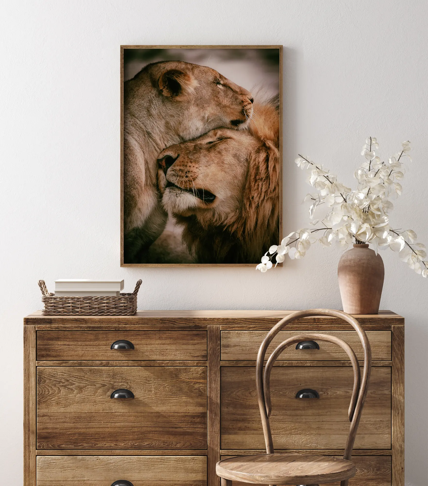 Imeline loomaportree plakat emalõvist ja lõvist, kes kaisutavad. Need kaks looma hõõruvad oma põski teineteise vastu kiindumuse märgina, silmad kinni täielikus usalduses. Nende kuldne karv loob sooja atmosfääri. "Kas sa tunned täna öösel armastust?"