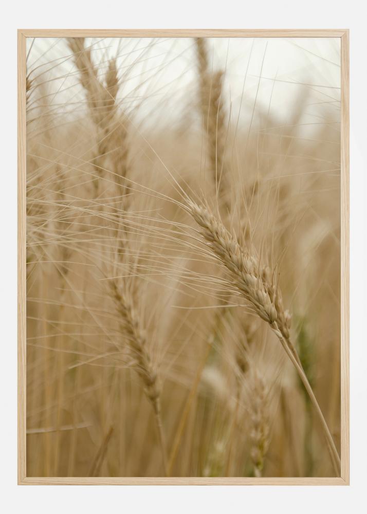 Plakat, millel on lähivõte nisupõllust. Nisuterad on esiplaanil detailselt nähtavad ja neil on imeline kuldne värv. Need suunduvad kaugusesse ja näitavad, kui suur nisupõld tegelikult on. Ülal on kahvatu taevas. Too loodus oma koju selle lihtsa pildiga.
