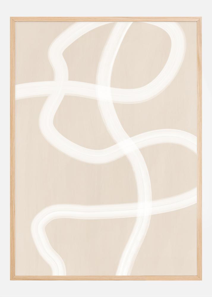 Selle postri pühkivad valged pintslitõmbed sooja beeži tausta vastu pakuvad köitvat ja kaasaegset esteetikat. Selle voolavad jooned ja orgaanilised vormid tekitavad liikumise ja spontaansuse tunde, säilitades samal ajal minimalismi, mis on iseloomulik kaasaegsele minimalistlikule disainile.