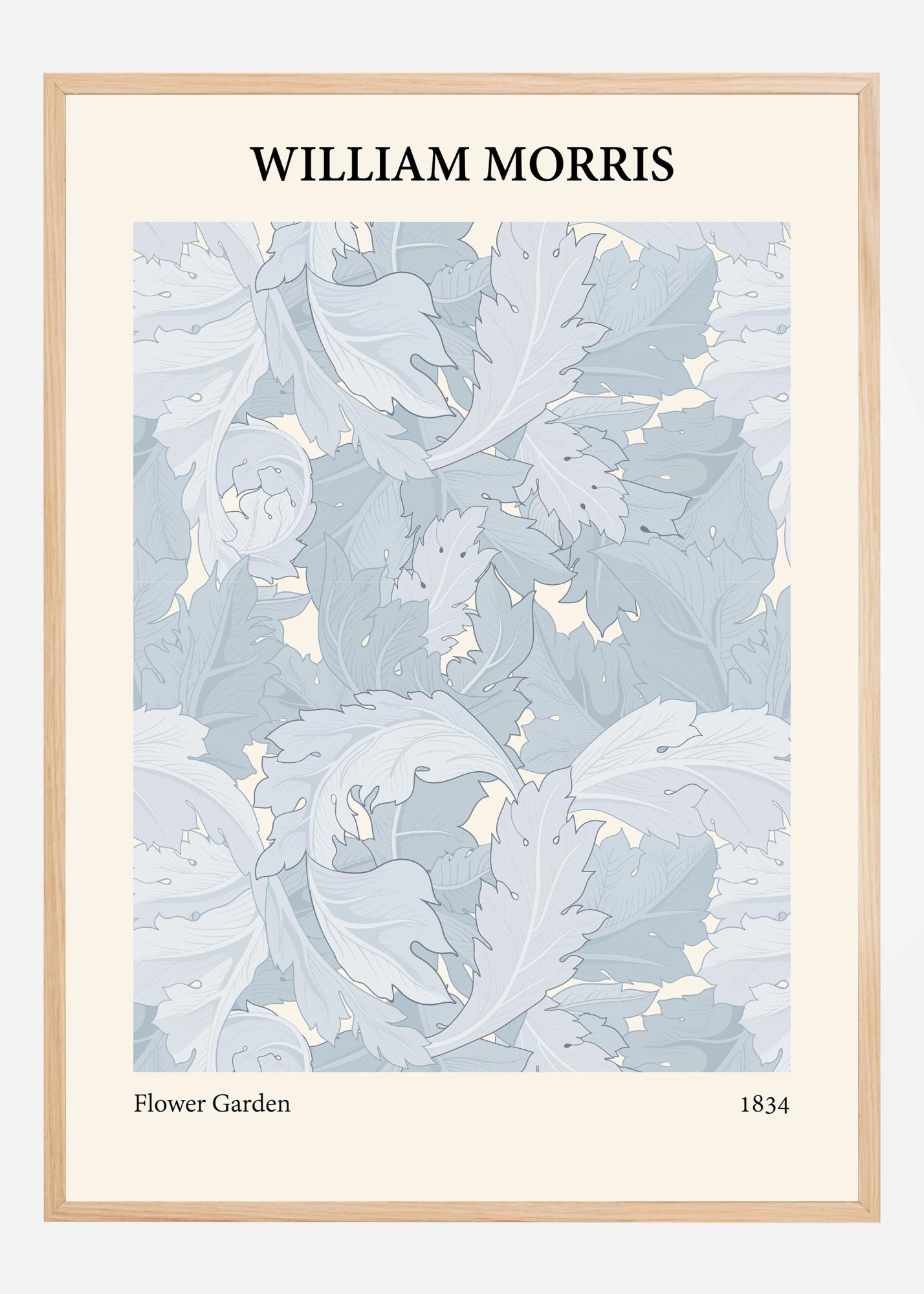 Rahulikkuse ja elegantsi atmosfääriga esitleb see William Morrise plakat keerukate lehtede sümfooniat jahedas ja rahustavas värvigammas. "Lilleaed", nagu pealkiri viitab, püüab rikkaliku ja vaikse aia olemust, voolates oma detailse lehemustriga üle pinna pehme rütmiga. Värvipalett on hoolikalt valitud, et peegeldada looduse peent ilu, ja sisaldab taevasinist, leheroherohelist ja kahvatukreemi värve, mis koos loovad harmoonilise ja tasakaalustatud esteetika.
