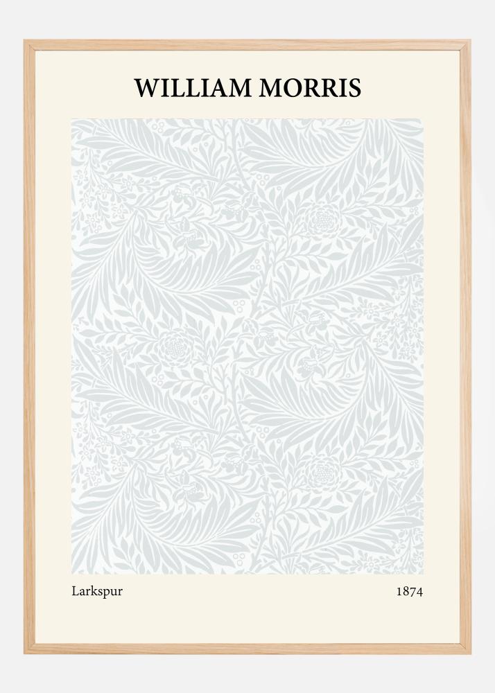 See delikaatne ja detailne William Morrise plakat pealkirjaga "Larkspur" ja dateeritud aastasse 1874 on suurepärane näide klassikalisest Arts and Crafts' stiilist. Muster on labürint õitsvaid lõvilõugu ja peenekoelisi lehti, kaunilt kujutatud ühtses värvitoonis. Disain on peen ja diskreetne, muutes selle printsi ideaalseks lisandiks kodu rahuliku ja kogutava mulje saavutamiseks.