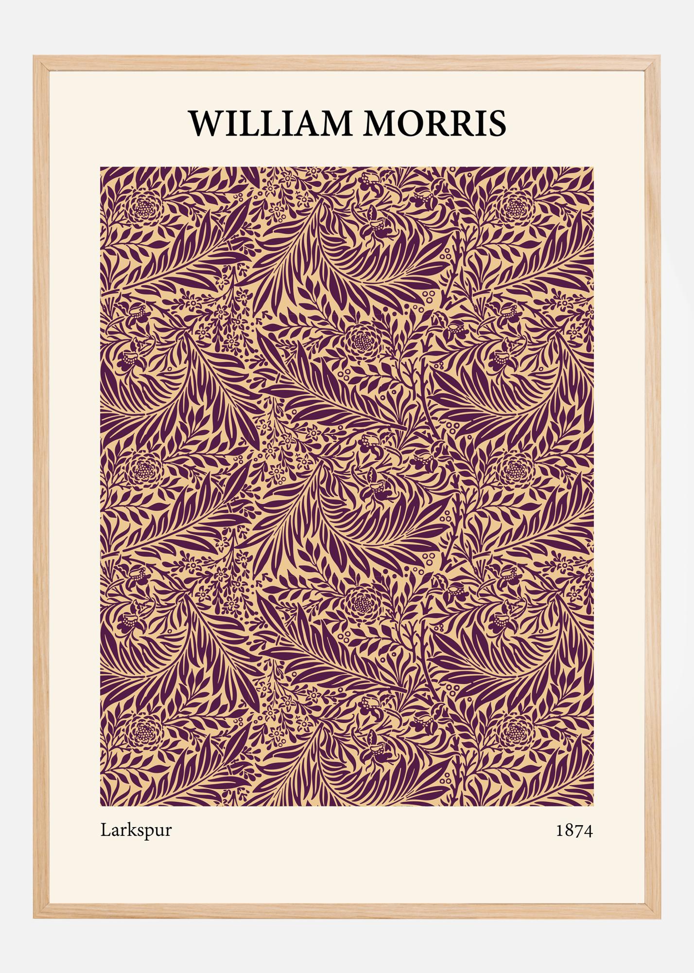 Seda julget ja köitvat William Morrise mustrit kujutab plakat, mis taaselustab klassikalise "Larkspur"-disaini aastast 1874. Elava burgundia ja beeži paletiga jäädvustab see print Morrise armastuse looduse ja mustrite vastu. Tema meisterlik töö vormi ja värviga toob esile iga detaili lehtedes ja õites, muutes postri oluliseks dekoratiivseks aktsendiks.