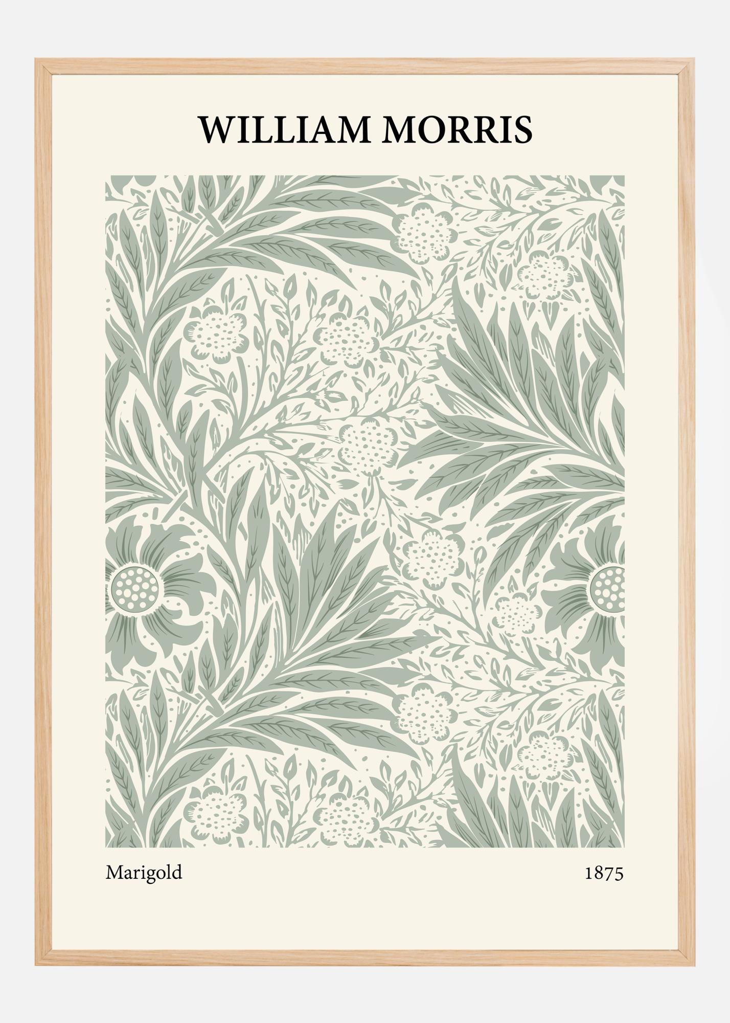 Selle eristuva plakati esitleb William Morrise disaini "Marigold" aastast 1875, mis näitab rikkalikult looduse inspireeritud motiive, kõik täpsusega kujutatud ja detailidele keskendunult. Elav, kuid samas peen roheline värvipalett on Morrise disainile iseloomulik ning toob ellu iga lehe ja kroonlehe, muutes kunstiteose ajatu sisekujunduse klassikaks.