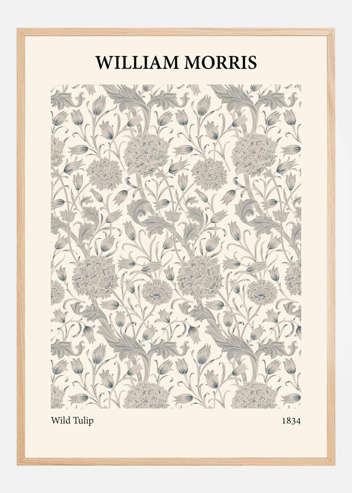 See William Morrise plakat, nimega "Wild Tulip", on elegantne tõlgendus metsikutest lilledest, kokku pandud suure oskuse ja hoolikusega. Muster on labürint tulpadest ja lehtedest, teostatud peenetes beeži ja halli toonides sooja, kreemjas taustal, muutes selle ideaalseks teoseks neile, kes soovivad luua lõõgastavat ja elegantset keskkonda. Illustratsioonide detailirohkus demonstreerib Morrise meisterlikku kätt ja tema võimet muuta igapäevased vaated kunstiks.