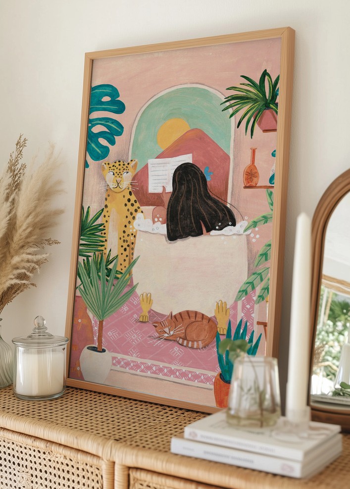 https://www.bga.ee/woman-taking-bath-in-pink-tropical-bathroom-plakat-100x140-cm