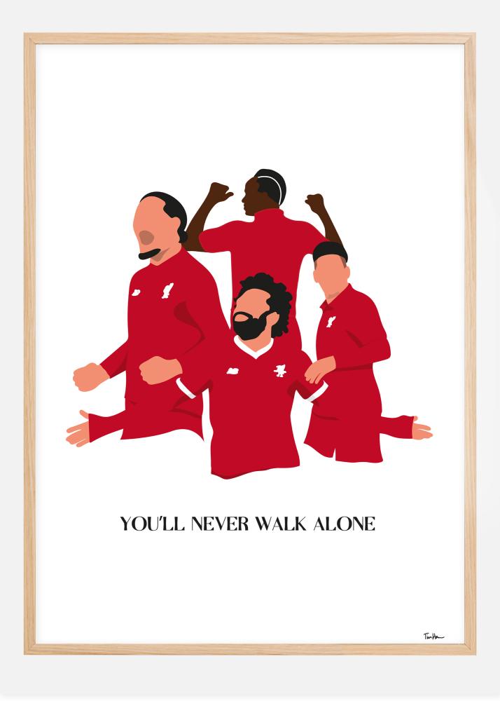Jalgpalli plakat nelja Liverpooli mängijaga stiliseeritud kujul nende punastes särkides. Mängijate all on sõnad You'll Never Walk Alone, klubi moto, aga ka oluline tsitaat elus, mis on ideaalne igal hommikul sind motiveerima.