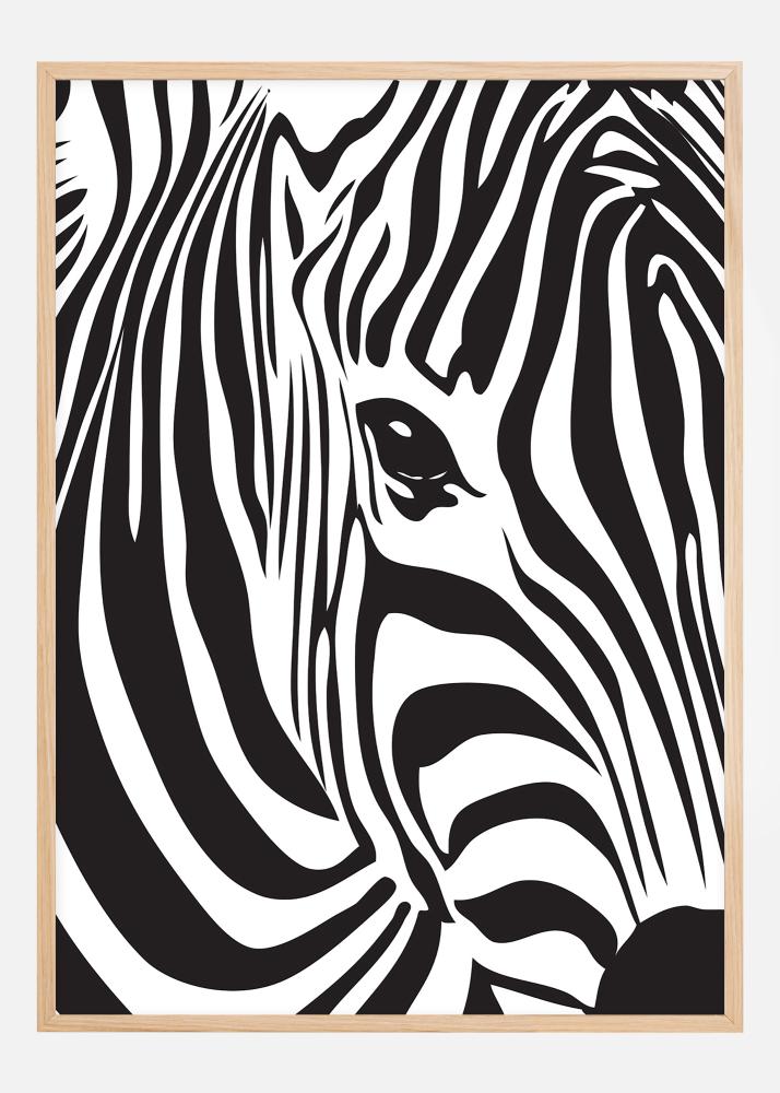Graafiline plakat lähivaatega sebrast. Plakat sobib hästi riputamiseks osana seinapildigalerii koos metsloomade illustratsioonide ja fotodega, mis muutuvad ruumis pilgupüüdjaks. Stiilipuhtad graafilised mustvalged motiivid teevad plakati suurepäraseks nii kodus kui ka avalikus keskkonnas. Sebramustri parimaks esiletõstmiseks kombineeri print musta õhukese profilega raami.
